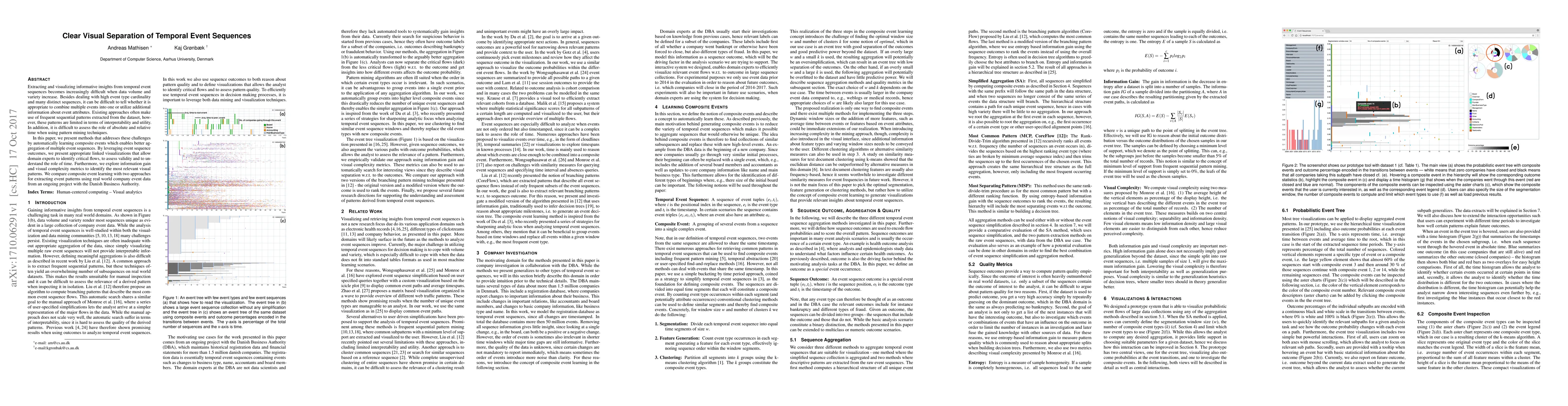This paper proposes methods to automatically learn composite events from temporal event sequences, enhancing the interpretability and utility of frequent sequential patterns. It introduces linked visualizations to help domain experts identify critical flows and assess the role of time, and evaluates the approach using real-world company event data.
