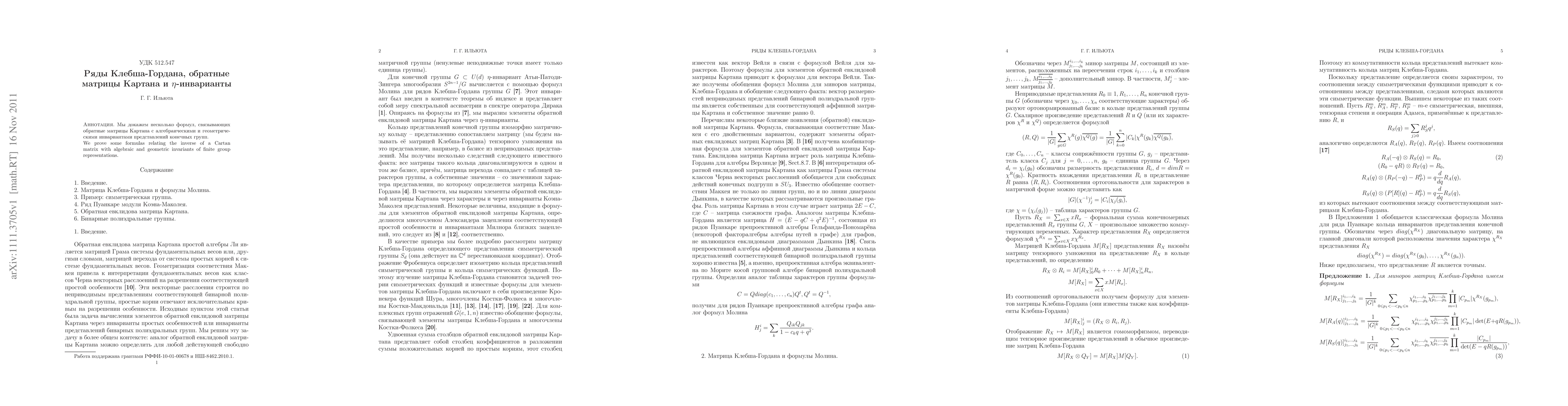 We prove some formulas relating the inverse of a Cartan matrix with algebraic and geometric invariants of finite group representations.
