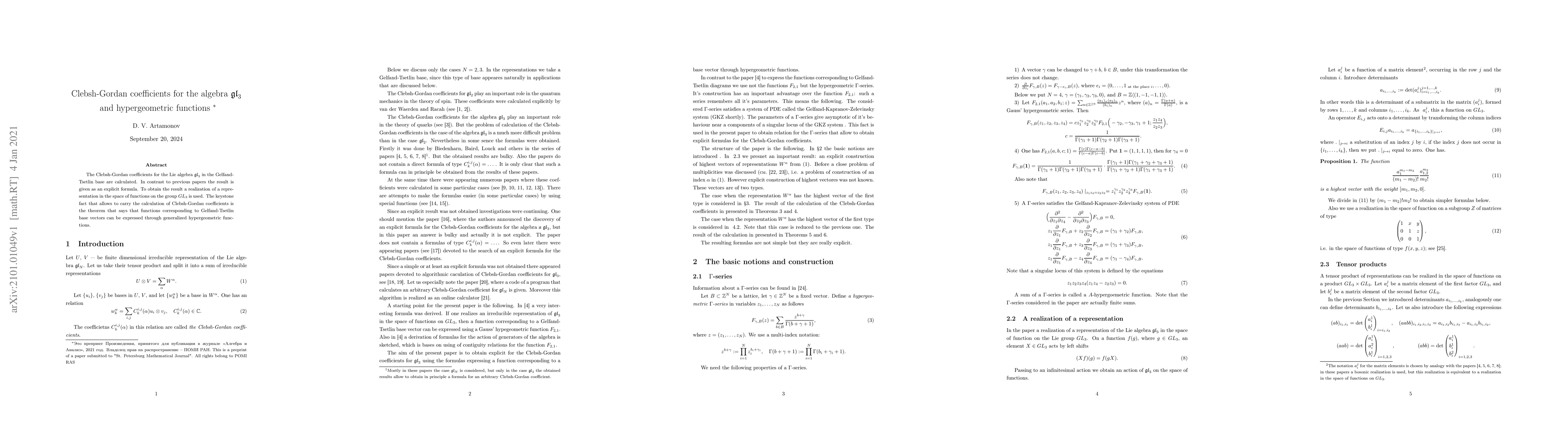 Researchers have found an explicit formula for Clebsh-Gordan coefficients in the Lie algebra $rak{gl}_3$, using a representation of functions on the group $GL_3$ and linking them to hypergeometric functions.