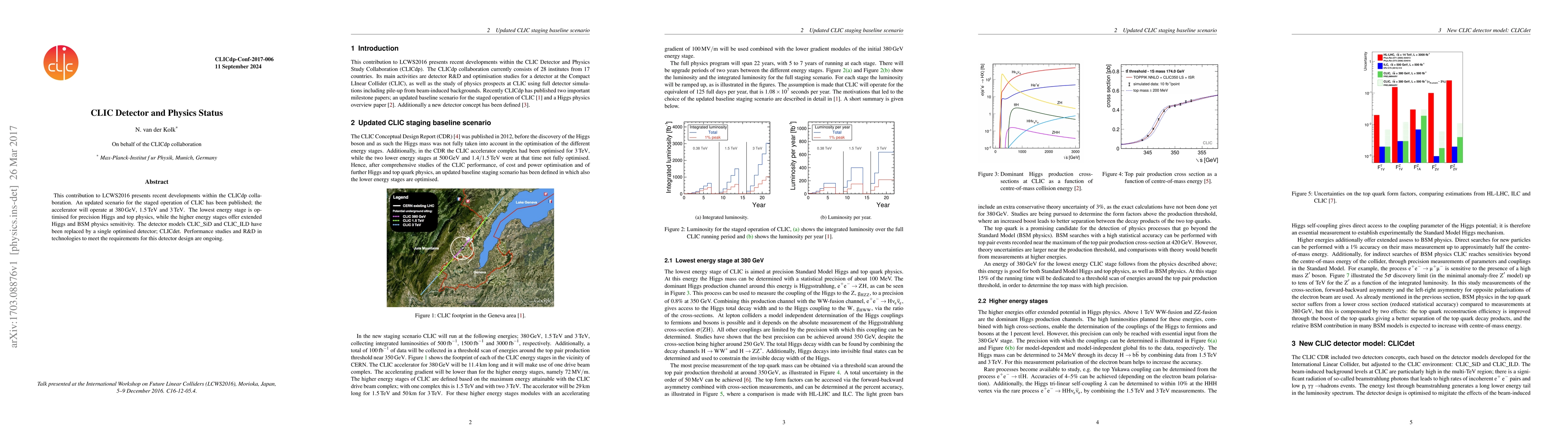 This contribution to LCWS2016 presents recent developments within the CLICdp collaboration. An updated scenario for the staged operation of CLIC has been published; the accelerator will operate at 380 GeV, 1.5 TeV and 3 TeV. The lowest energy stage is optimised for precision Higgs and top physics, while the higher energy stages offer extended Higgs and BSM physics sensitivity. The detector models CLIC_SiD and CLIC_ILD have been replaced by a single optimised detector; CLICdet. Performance studies and R&D in technologies to meet the requirements for this detector design are ongoing.