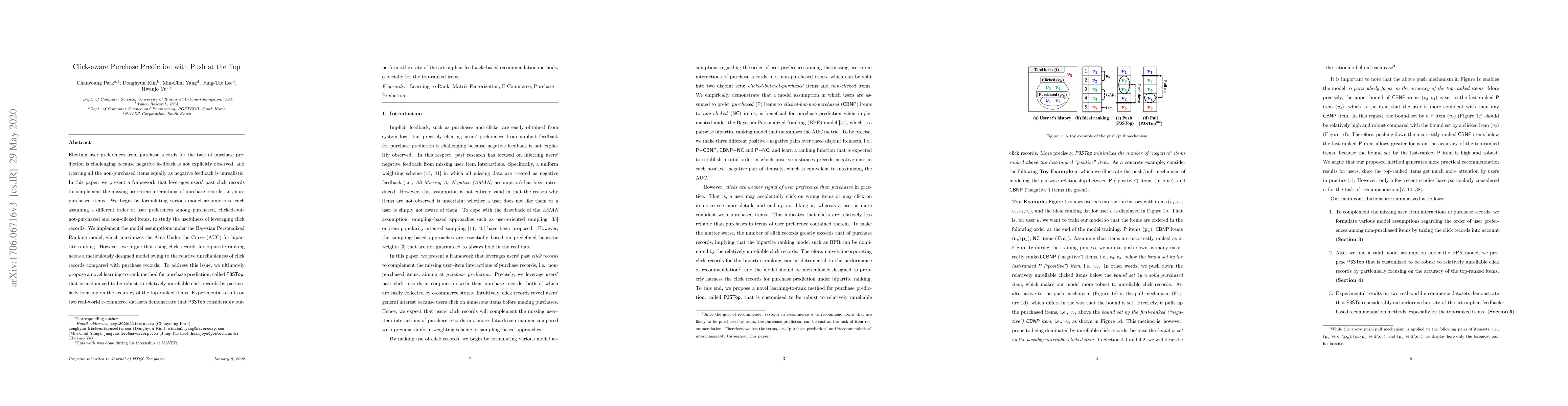 This study develops a novel framework, P3Stop, for predicting user purchases by leveraging click records to compensate for missing purchase interactions. The proposed method outperforms existing implicit-feedback recommendation models, particularly in ranking the most relevant items accurately.