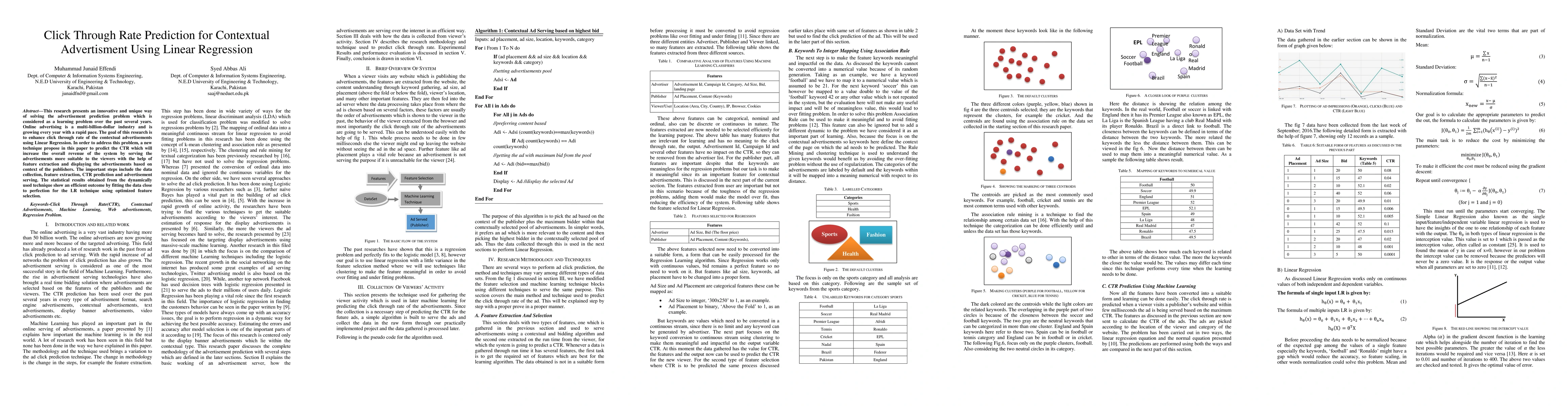 This paper proposes a Linear Regression technique to predict click-through rates (CTR) for contextual advertisements, aiming to enhance ad relevance and revenue. The method involves data collection, feature extraction, CTR prediction, and targeted ad serving, demonstrating effective results through optimized feature selection.