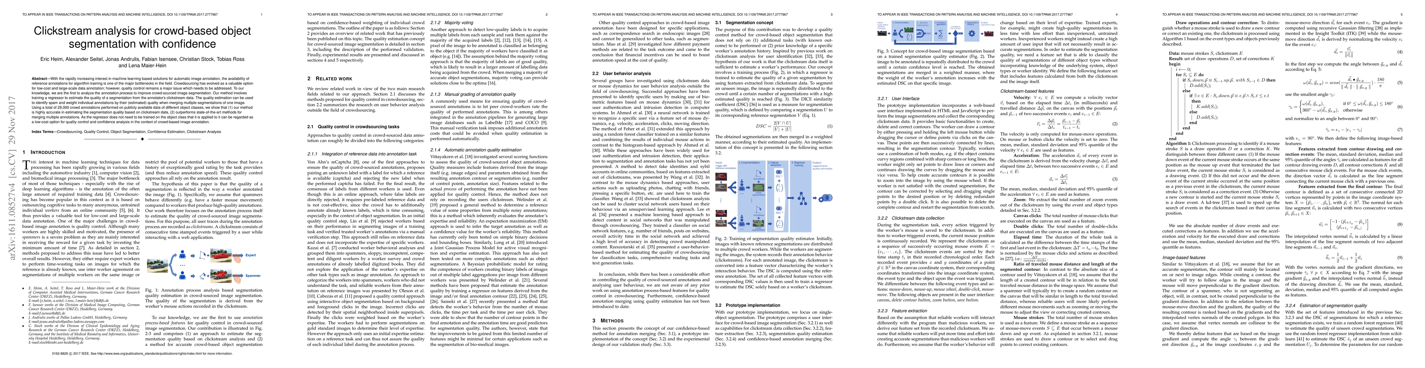This paper proposes a method to improve crowd-sourced image segmentation by analyzing annotators' clickstream data to estimate segmentation quality. The approach outperforms existing methods for merging annotations and offers a low-cost solution for quality control in crowd-based image annotation.