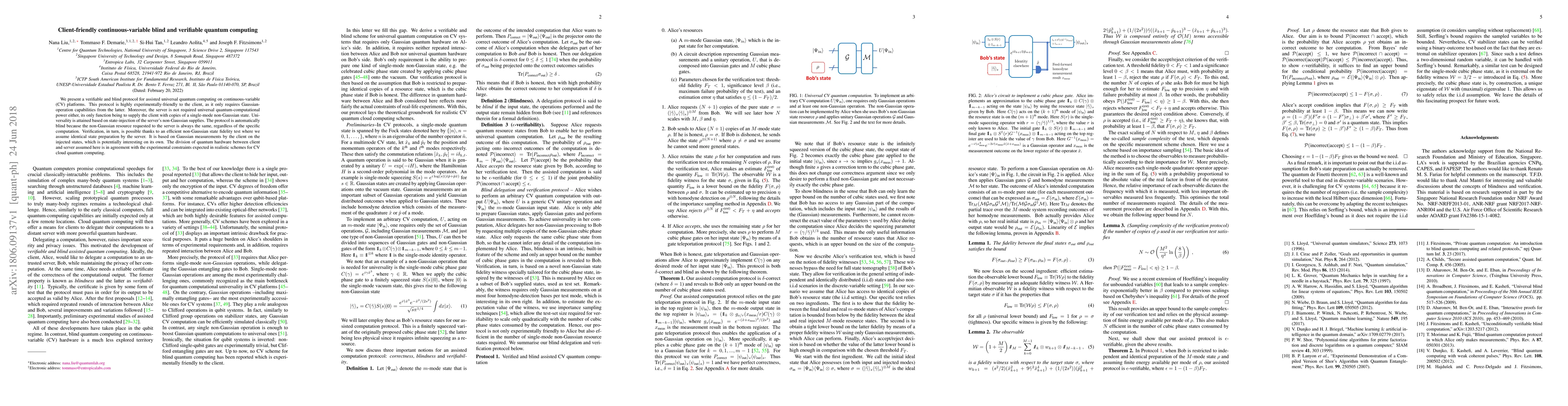 This paper proposes a protocol for universal quantum computing on continuous-variable platforms that is both verifiable and blind, requiring only Gaussian operations from the client. The server supplies non-Gaussian states for state-injection, ensuring universality while maintaining client-friendly experimental constraints.
