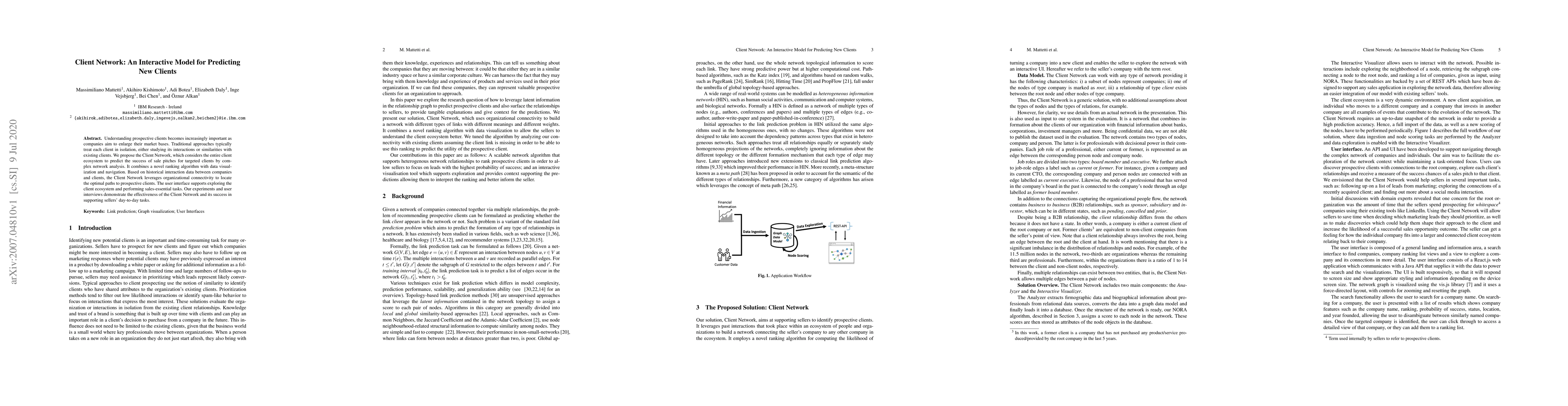 Understanding prospective clients becomes increasingly important as companies aim to enlarge their market bases. Traditional approaches typically treat each client in isolation, either studying its interactions or similarities with existing clients. We propose the Client Network, which considers the entire client ecosystem to predict the success of sale pitches for targeted clients by complex network analysis. It combines a novel ranking algorithm with data visualization and navigation. Based on historical interaction data between companies and clients, the Client Network leverages organizational connectivity to locate the optimal paths to prospective clients. The user interface supports exploring the client ecosystem and performing sales-essential tasks. Our experiments and user interviews demonstrate the effectiveness of the Client Network and its success in supporting sellers' day-to-day tasks.