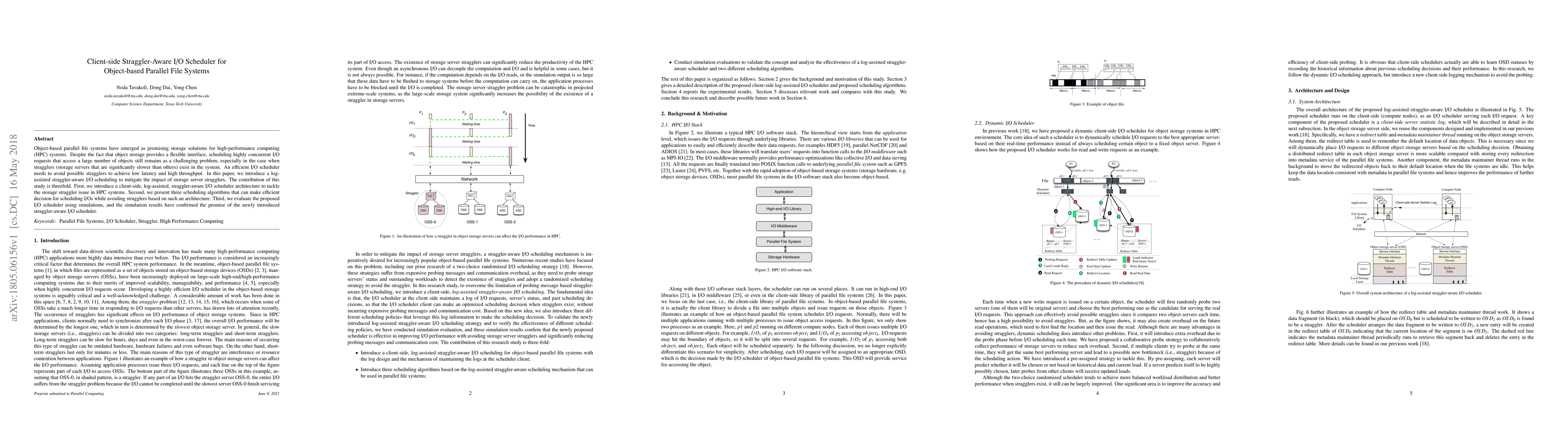 This paper proposes a client-side, log-assisted I/O scheduler designed to mitigate the impact of stragglers in object-based parallel file systems for HPC. It introduces three scheduling algorithms to efficiently manage I/O requests and avoid slow storage servers, demonstrating improved performance through simulations.