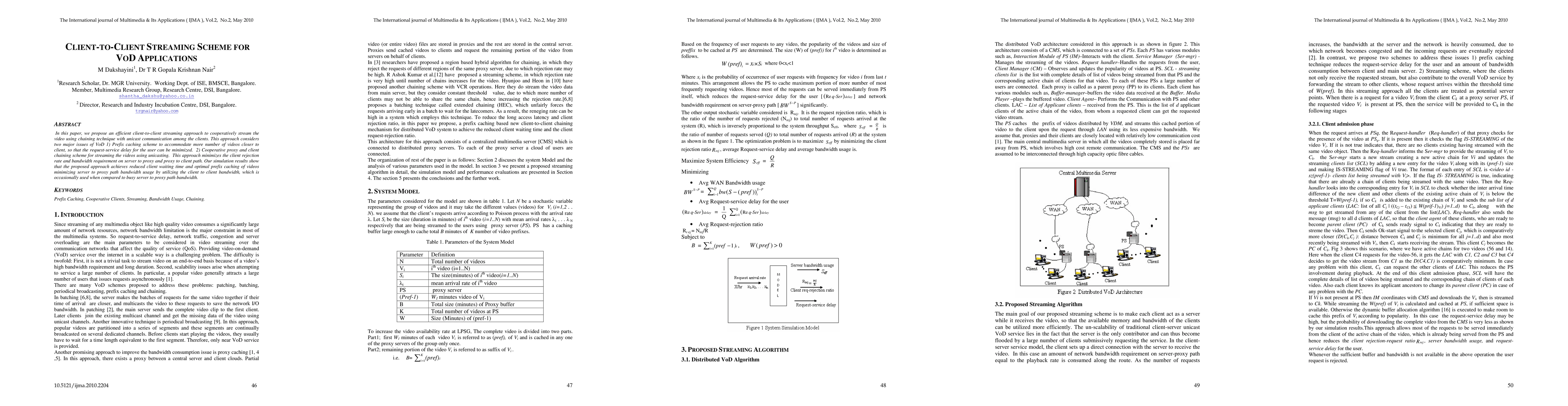 This paper proposes a client-to-client streaming scheme for Video on Demand (VoD) applications that uses chaining and unicast communication among clients to minimize request-service delay and optimize bandwidth usage. The approach includes prefix caching and cooperative proxy chaining to reduce client rejection rates and server bandwidth requirements.