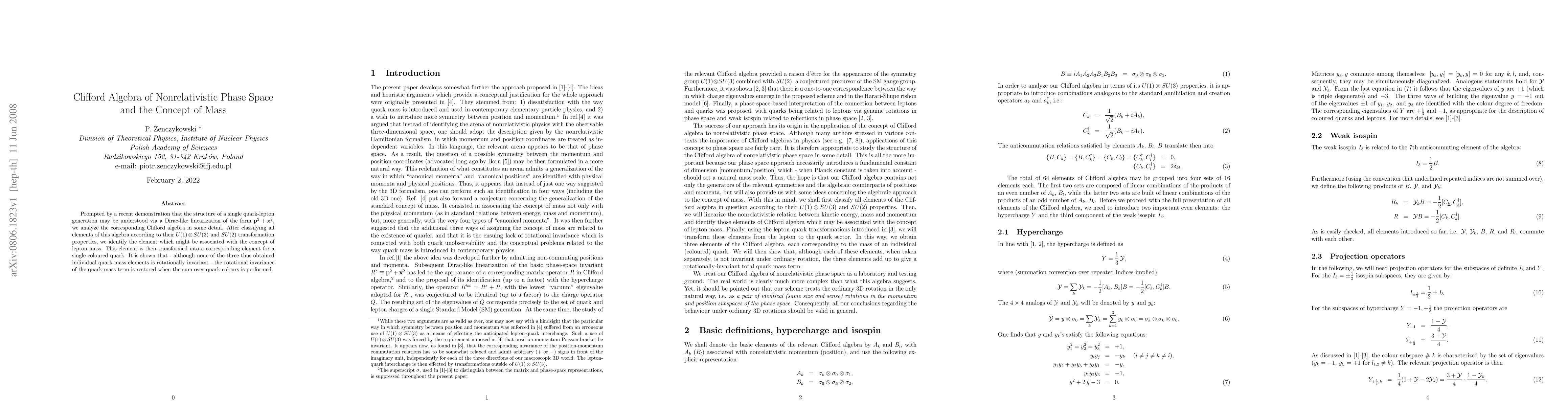Prompted by a recent demonstration that the structure of a single quark-lepton generation may be understood via a Dirac-like linearization of the form p^2+x^2, we analyze the corresponding Clifford algebra in some detail. After classifying all elements of this algebra according to their U(1) x SU(3) and SU(2) transformation properties, we identify the element which might be associated with the concept of lepton mass. This element is then transformed into a corresponding element for a single coloured quark. It is shown that - although none of the three thus obtained individual quark mass elements is rotationally invariant - the rotational invariance of the quark mass term is restored when the sum over quark colours is performed.