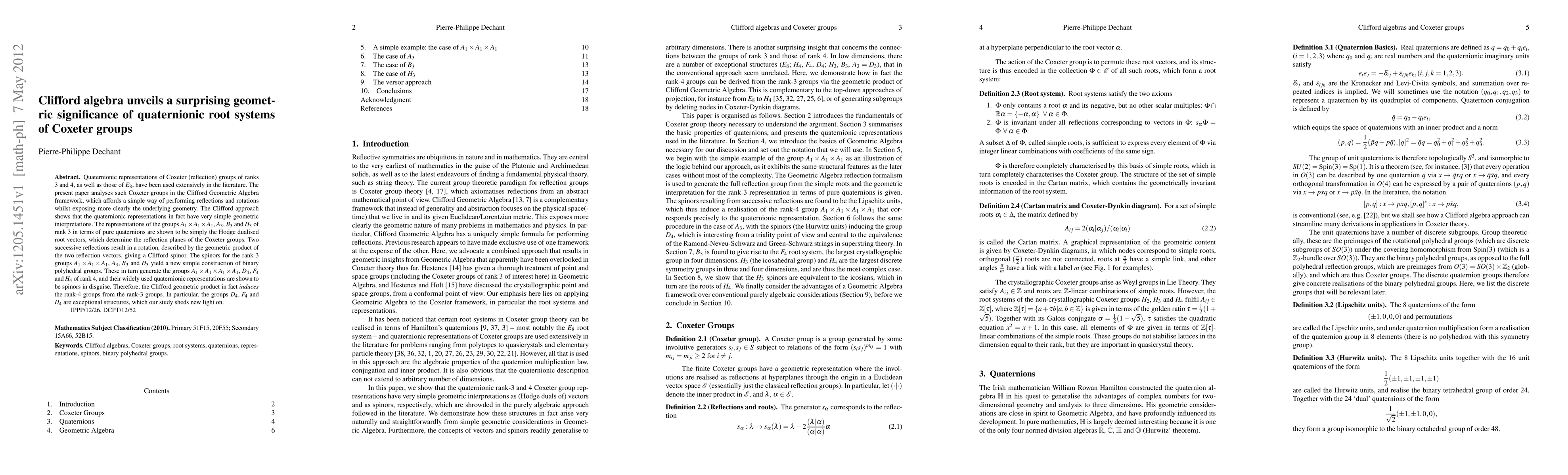 This paper utilizes Clifford algebra to reveal the geometric significance of quaternionic root systems in Coxeter groups, showing that their representations correspond to Hodge dualised root vectors and that rank-4 groups are induced from rank-3 groups through the Clifford geometric product.