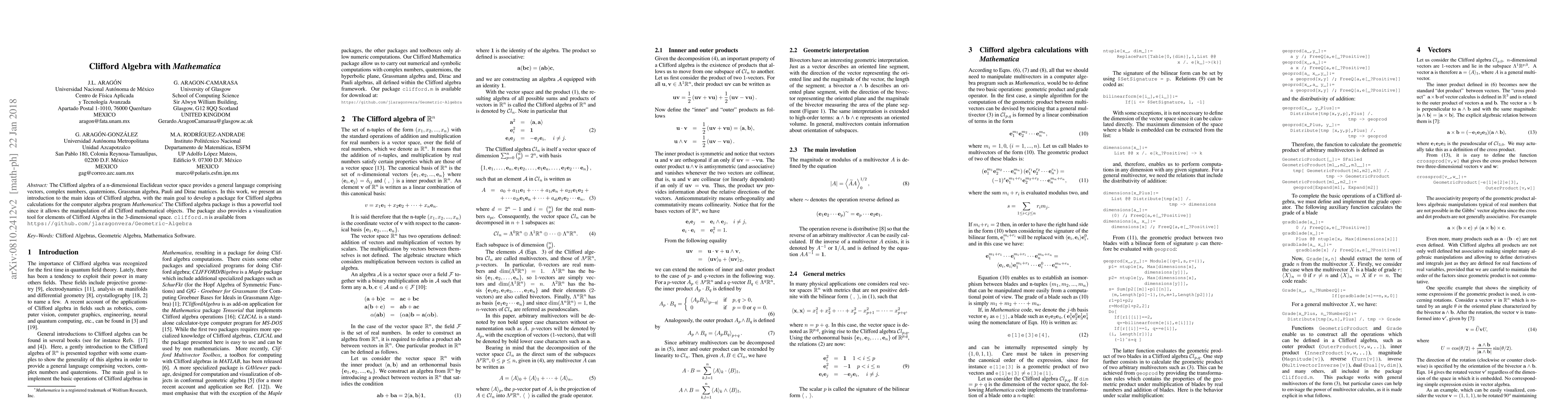 This paper introduces Clifford algebra and develops a Mathematica package for its calculations, encompassing vectors, complex numbers, and matrices. The package also includes a visualization tool for 3D elements, available on GitHub.
