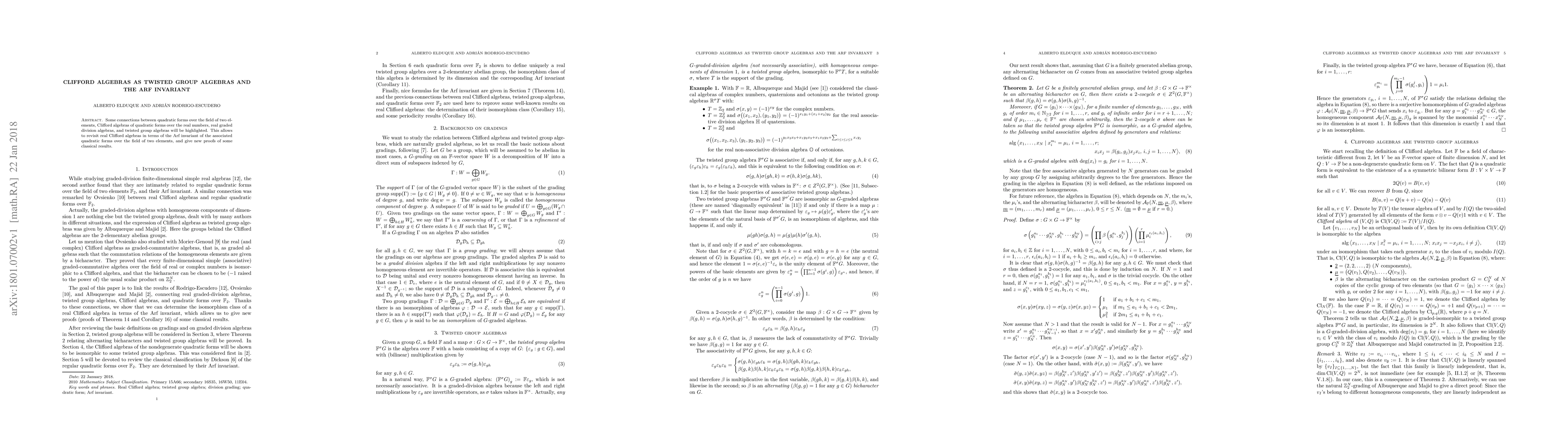 This paper explores connections between Clifford algebras, quadratic forms, and twisted group algebras, focusing on the Arf invariant over the field of two elements, to provide new proofs of classical results regarding real Clifford algebras.