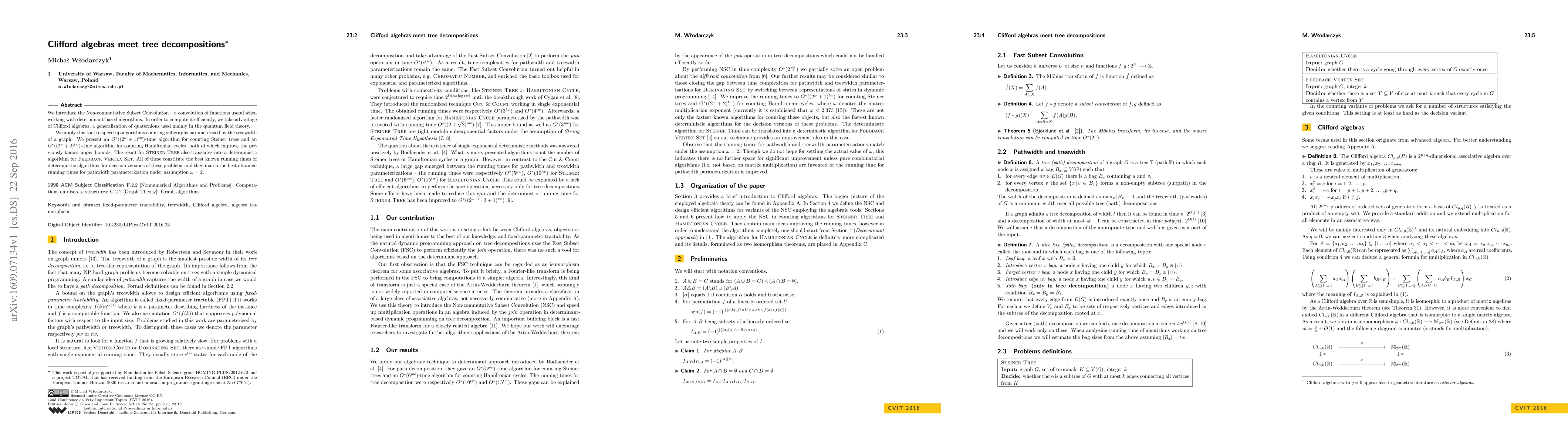 We introduce the Non-commutative Subset Convolution - a convolution of functions useful when working with determinant-based algorithms. In order to compute it efficiently, we take advantage of Clifford algebras, a generalization of quaternions used mainly in the quantum field theory. We apply this tool to speed up algorithms counting subgraphs parameterized by the treewidth of a graph. We present an $O^*((2^\omega + 1)^{tw})$-time algorithm for counting Steiner trees and an $O^*((2^\omega + 2)^{tw})$-time algorithm for counting Hamiltonian cycles, both of which improve the previously known upper bounds. The result for Steiner Tree also translates into a deterministic algorithm for Feedback Vertex Set. All of these constitute the best known running times of deterministic algorithms for decision versions of these problems and they match the best obtained running times for pathwidth parameterization under assumption $\omega = 2$.