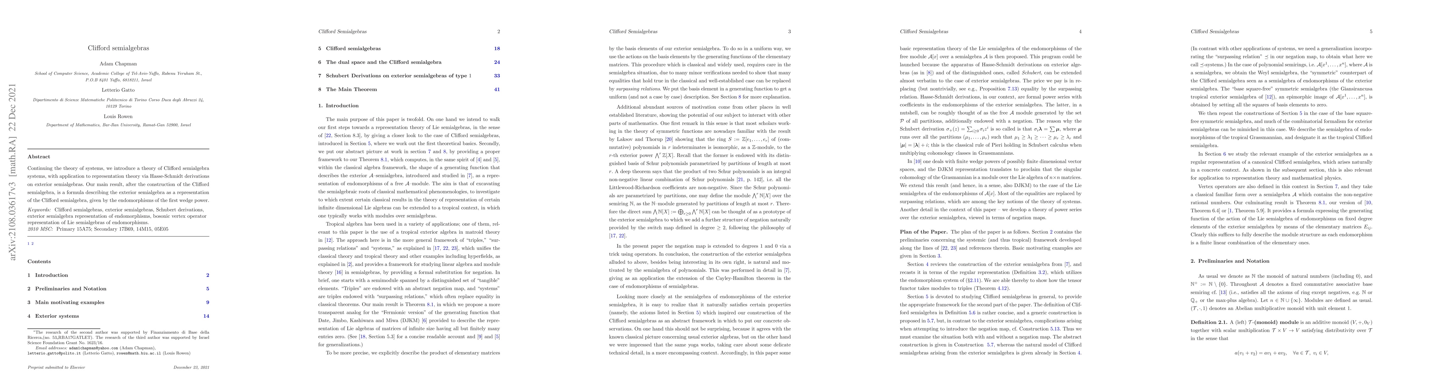 This paper introduces Clifford semialgebra systems and applies them to representation theory using Hasse-Schmidt derivations on exterior semialgebras. The main result provides a formula representing the exterior semialgebra through the endomorphisms of the first wedge power.