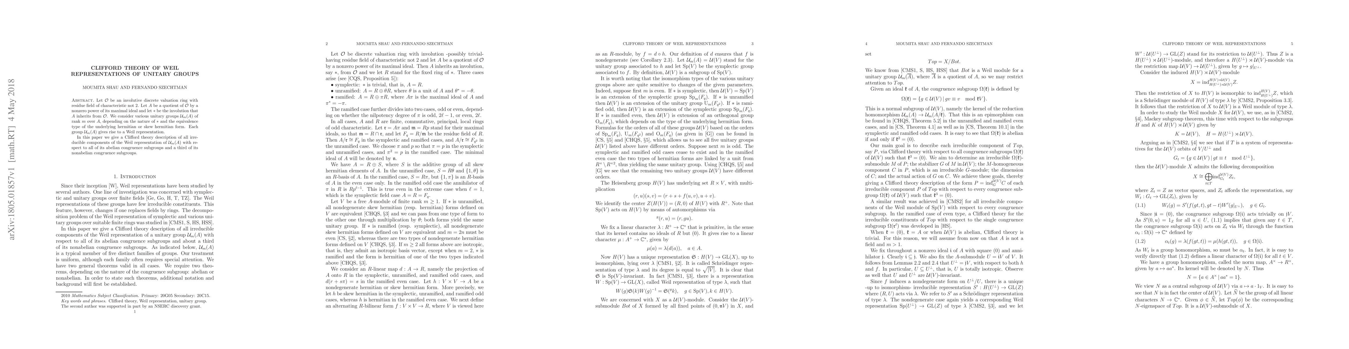 Let ${\mathcal O}$ be an involutive discrete valuation ring with residue field of characteristic not 2. Let $A$ be a quotient of ${\mathcal O}$ by a nonzero power of its maximal ideal and let $*$ be the involution that $A$ inherits from ${\mathcal O}$. We consider various unitary groups ${\mathcal U}_m(A)$ of rank $m$ over $A$, depending on the nature of $*$ and the equivalence type of the underlying hermitian or skew hermitian form. Each group ${\mathcal U}_m(A)$ gives rise to a Weil representation. In this paper, we give a Clifford theory description of all irreducible components of the Weil representation of ${\mathcal U}_m(A)$ with respect to all of its abelian congruence subgroups and a third of its nonabelian congruence subgroups.