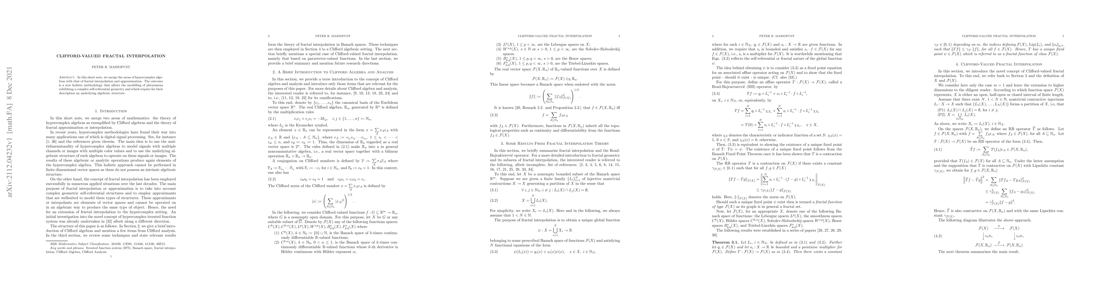 The paper introduces a Clifford-valued fractal interpolation method, defining an RB operator T that ensures the existence and uniqueness of fractal functions within specified function spaces.