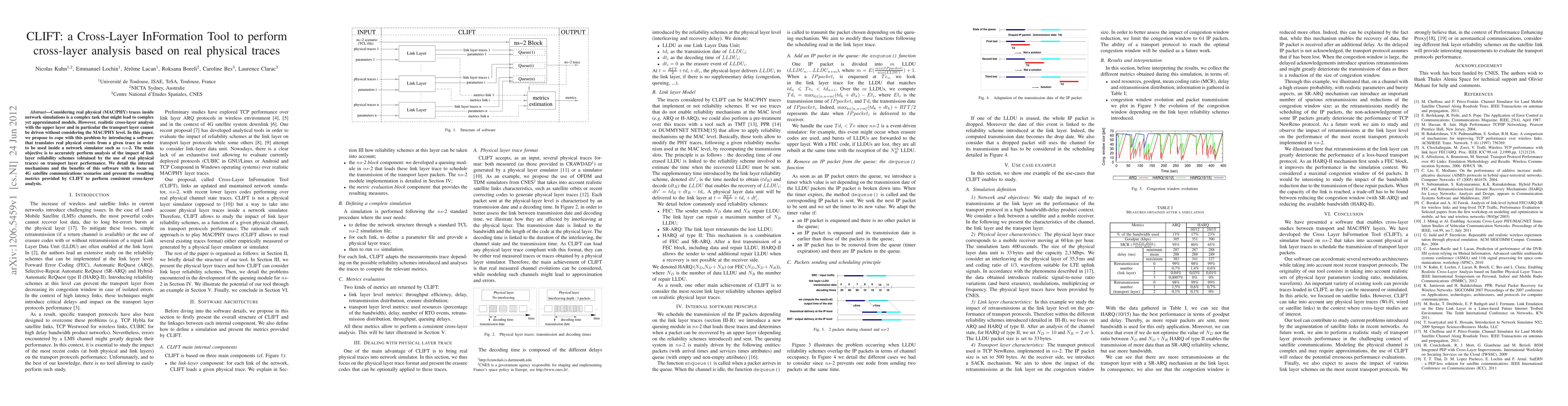 CLIFT is a software tool that translates real physical events from network traces to analyze cross-layer performance in 4G satellite communications scenarios. It provides accurate metrics for link layer reliability schemes' impact on transport layer performance.