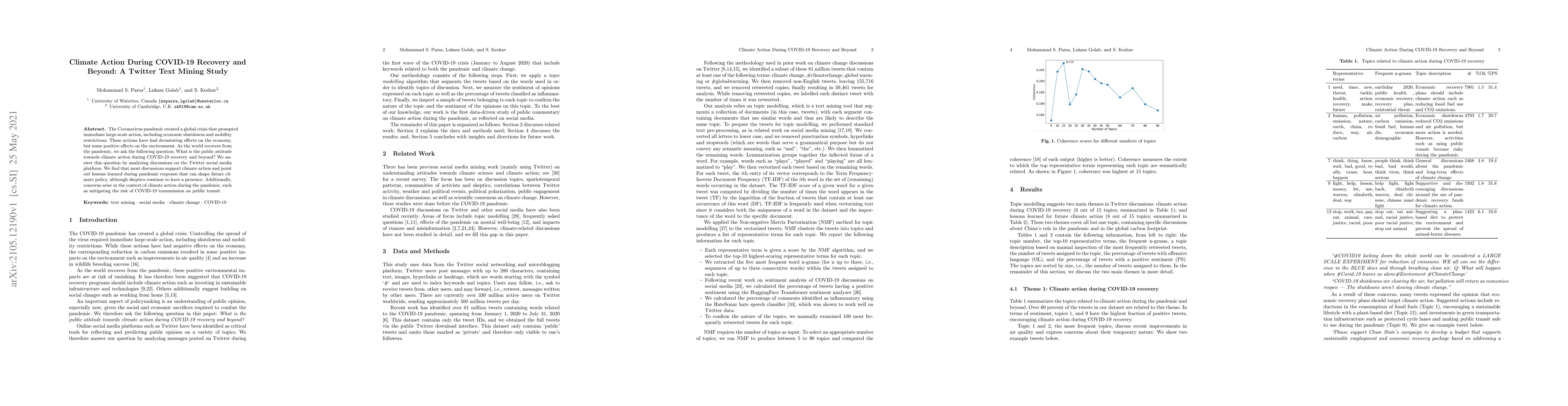 The study analyzed Twitter data on climate change and COVID-19 using natural language processing techniques.
