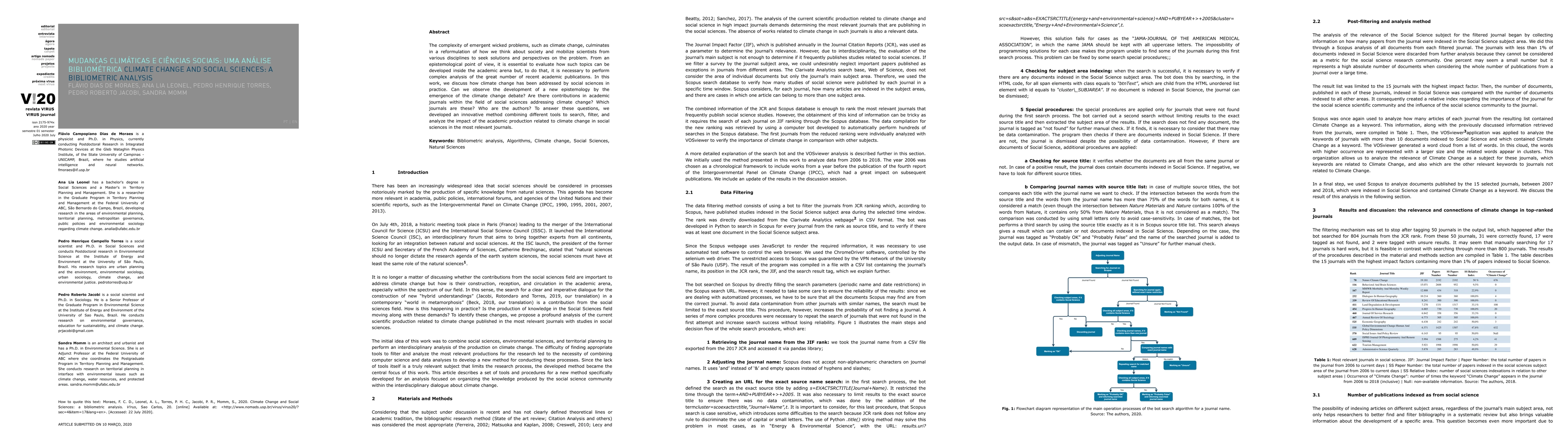 The complexity of emergent wicked problems, such as climate change, culminates in a reformulation of how we think about society and mobilize scientists from various disciplines to seek solutions and perspectives on the problem. From an epistemological point of view, it is essential to evaluate how such topics can be developed inside the academic arena but, to do that, it is necessary to perform complex analysis of the great number of recent academic publications. In this work, we discuss how climate change has been addressed by social sciences in practice. Can we observe the development of a new epistemology by the emergence of the climate change debate? Are there contributions in academic journals within the field of social sciences addressing climate change? Which journals are these? Who are the authors? To answer these questions, we developed an innovative method combining different tools to search, filter, and analyze the impact of the academic production related to climate change in social sciences in the most relevant journals.