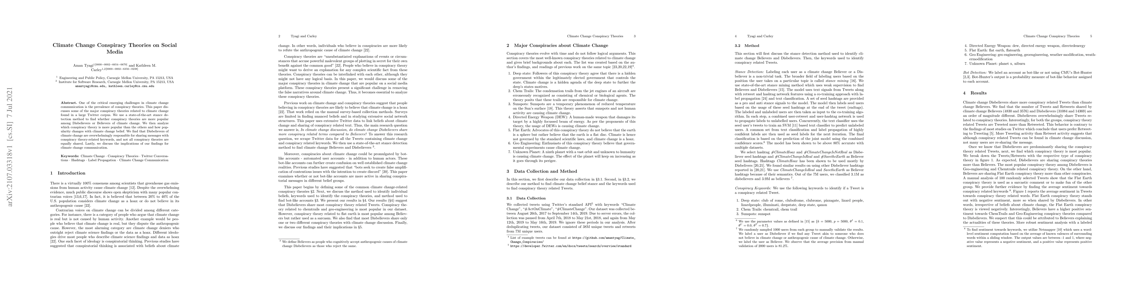 This paper examines the prevalence of climate change conspiracy theories on Twitter, using a stance detection method to determine that Disbelievers of climate change are more likely to share such theories. It finds that not all conspiracy theories are equally popular and discusses implications for climate change communication.