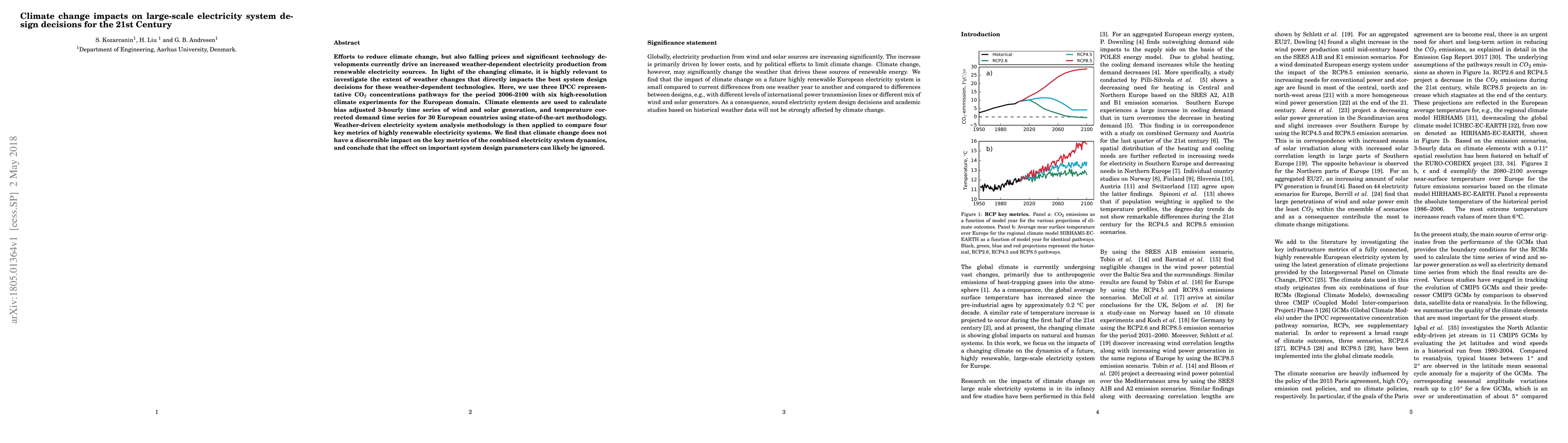 This paper investigates how climate change affects the design of large-scale electricity systems relying on renewable sources. Using high-resolution climate models and state-of-the-art methodology, it finds that climate change does not significantly impact key metrics of these systems, suggesting minimal effect on system design parameters.