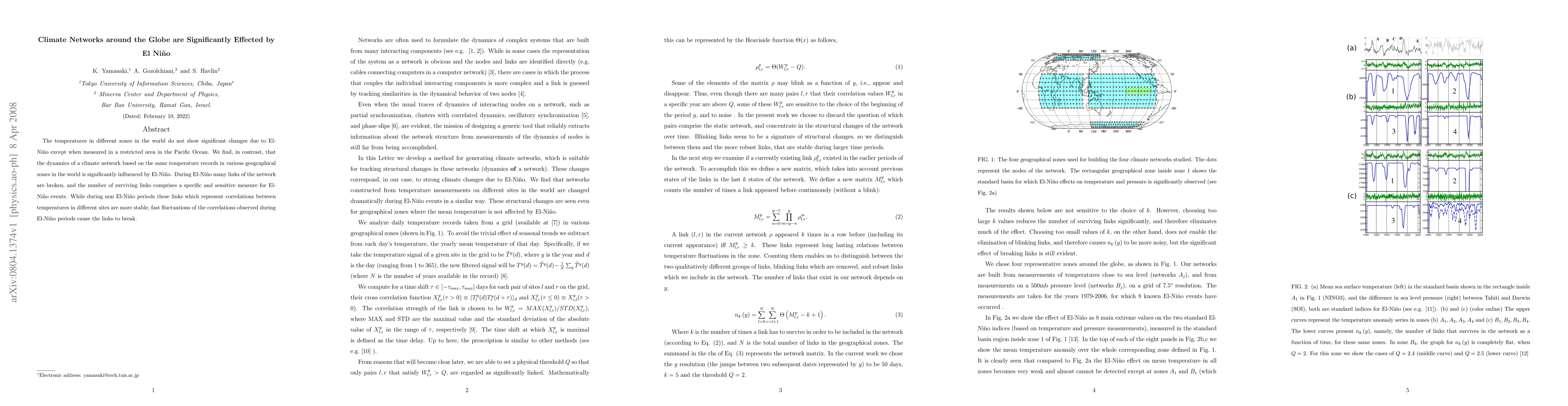 This study reveals that El Niño significantly disrupts global climate networks based on temperature correlations, despite minimal changes in localized temperatures. The network's links, representing temperature correlations, break during El Niño, providing a sensitive measure of its occurrence.