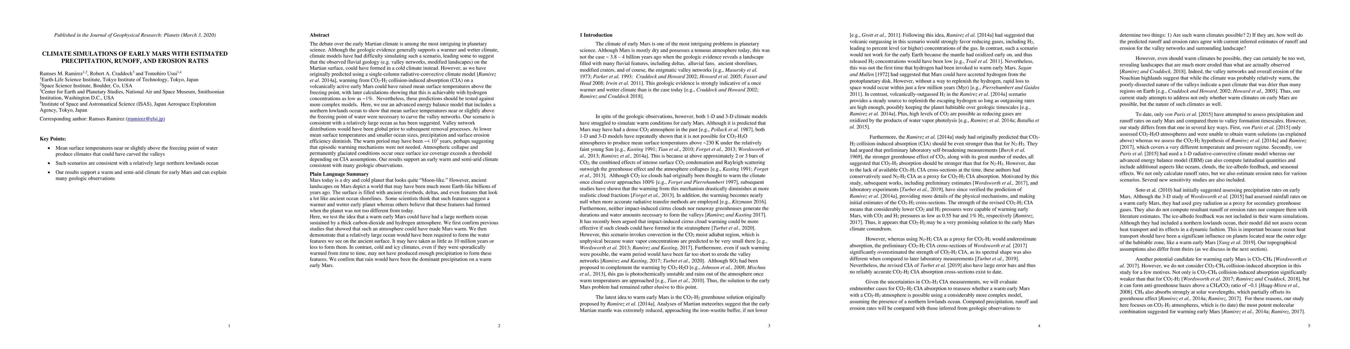 This research uses an advanced energy balance model to simulate early Mars' climate, showing that a warmer and wetter climate, with temperatures near the freezing point of water, could have formed valley networks. The findings support a relatively large ocean and suggest that the warm period was short, possibly less than 10 million years.