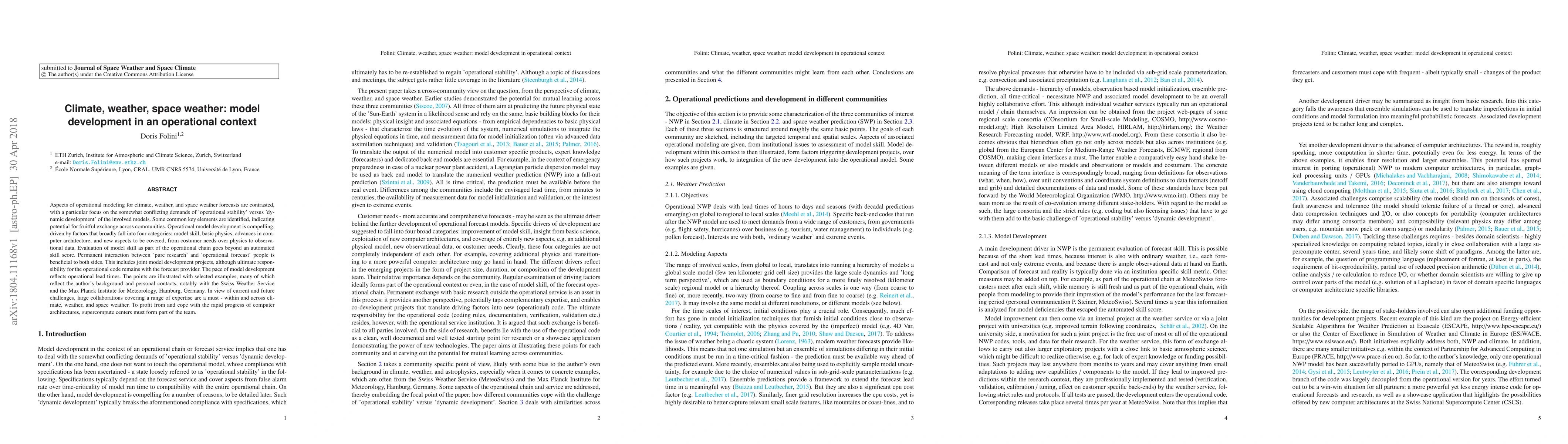 This paper discusses the development of operational models for climate, weather, and space weather forecasts, highlighting the tension between model stability and dynamic improvement. It emphasizes the importance of collaboration between research and operational forecasting teams to enhance model skill and address evolving customer needs and observational data.