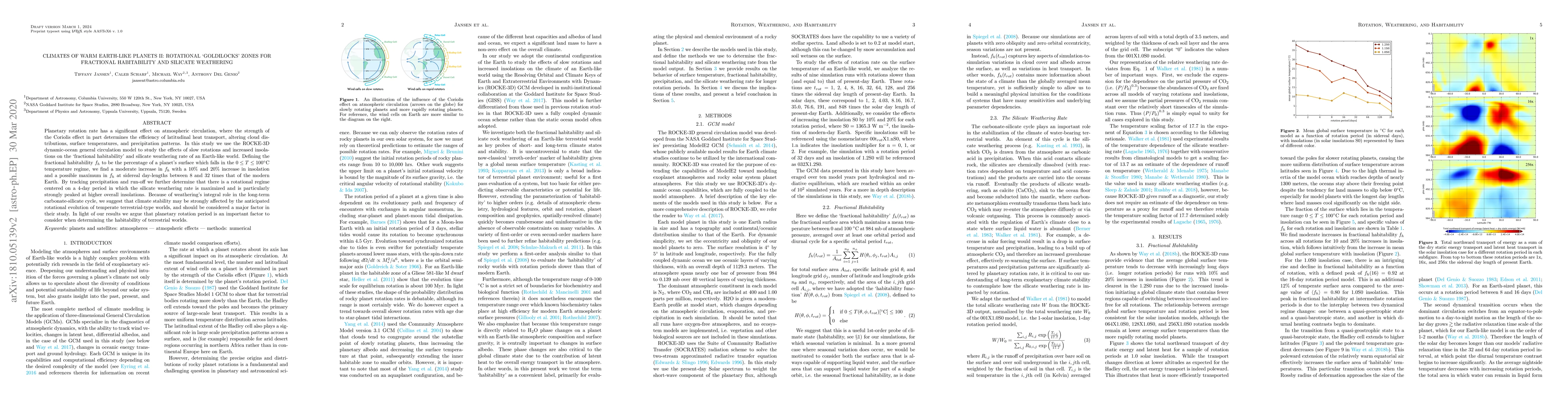 Planetary rotation rate has a significant effect on atmospheric circulation, where the strength of the Coriolis effect in part determines the efficiency of latitudinal heat transport, altering cloud distributions, surface temperatures, and precipitation patterns. In this study we use the ROCKE-3D dynamic-ocean general circulation model to study the effects of slow rotations and increased insolations on the 'fractional habitability' and silicate weathering rate of an Earth-like world. Defining the fractional habitability f_h to be the percentage of a planet's surface which falls in the 0 <= T <= 100 C temperature regime, we find a moderate increase in f_h with a 10% and 20% increase in insolation and a possible maximum in f_h at sidereal day-lengths between 8 and 32 times that of the modern Earth. By tracking precipitation and run-off we further determine that there is a rotational regime centered on a 4-day period in which the silicate weathering rate is maximized and is particularly strongly peaked at higher overall insolations. Because of weathering's integral role in the long-term carbonate-silicate cycle, we suggest that climate stability may be strongly affected by the anticipated rotational evolution of temperate terrestrial-type worlds, and should be considered a major factor in their study. In light of our results we argue that planetary rotation period is an important factor to consider when determining the habitability of terrestrial worlds.
