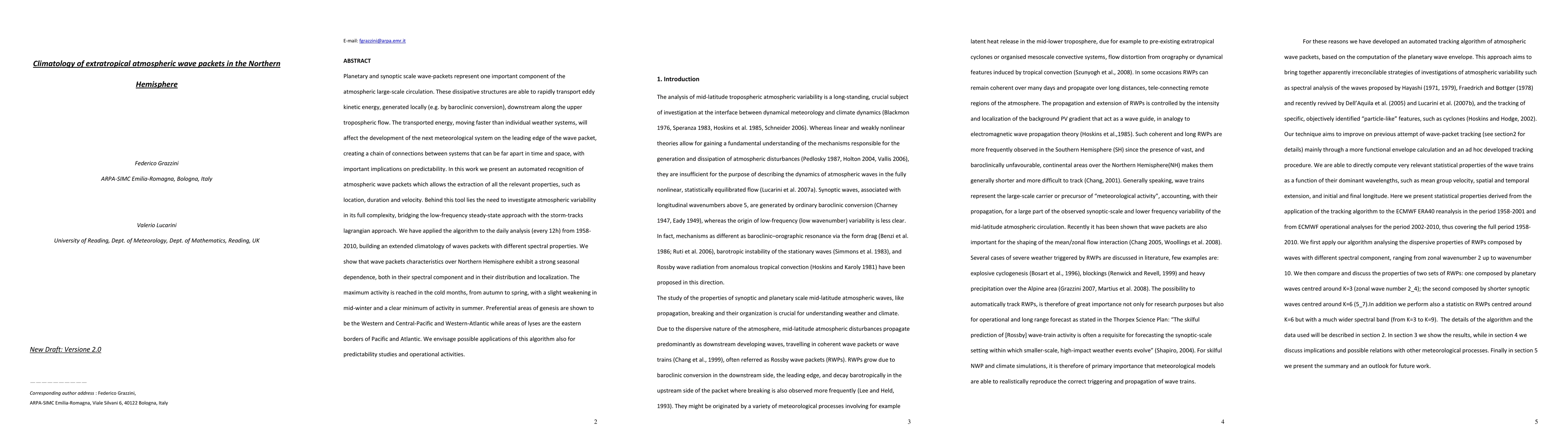 This study develops an automated method to recognize and analyze atmospheric wave packets in the Northern Hemisphere, revealing their seasonal dependence and spatial distribution from 1958-2010. The research highlights maximum activity in cold months and identifies preferential genesis and lysis areas, with potential applications for predictability studies.