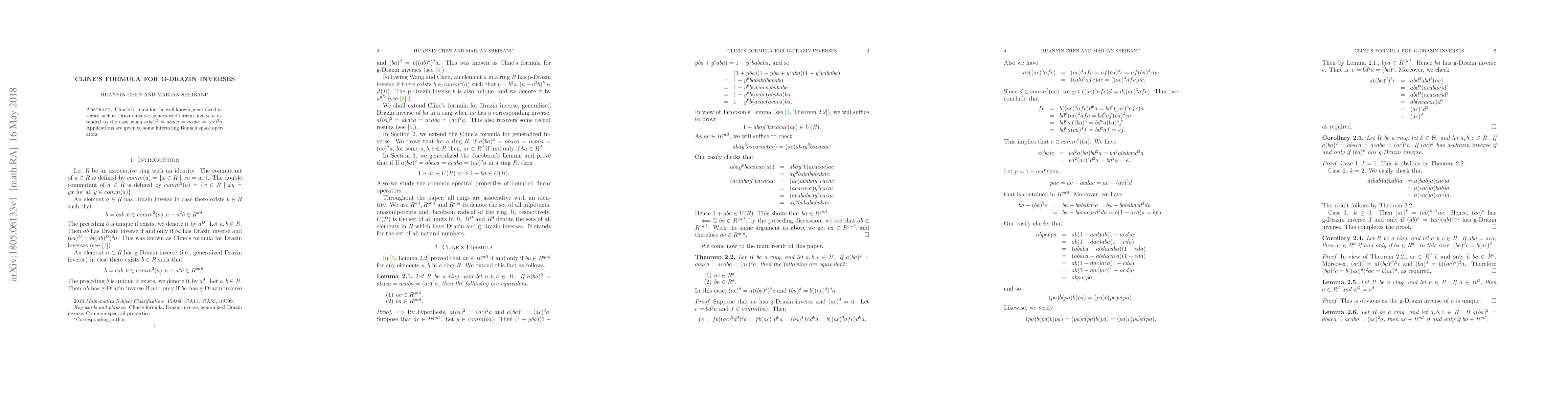 Summary: This paper extends Cline's formula for generalized Drazin inverses under specific conditions involving the element $a$, and applies the results to certain Banach space operators. The new formula provides insights into the behavior of these inverses in operator theory.