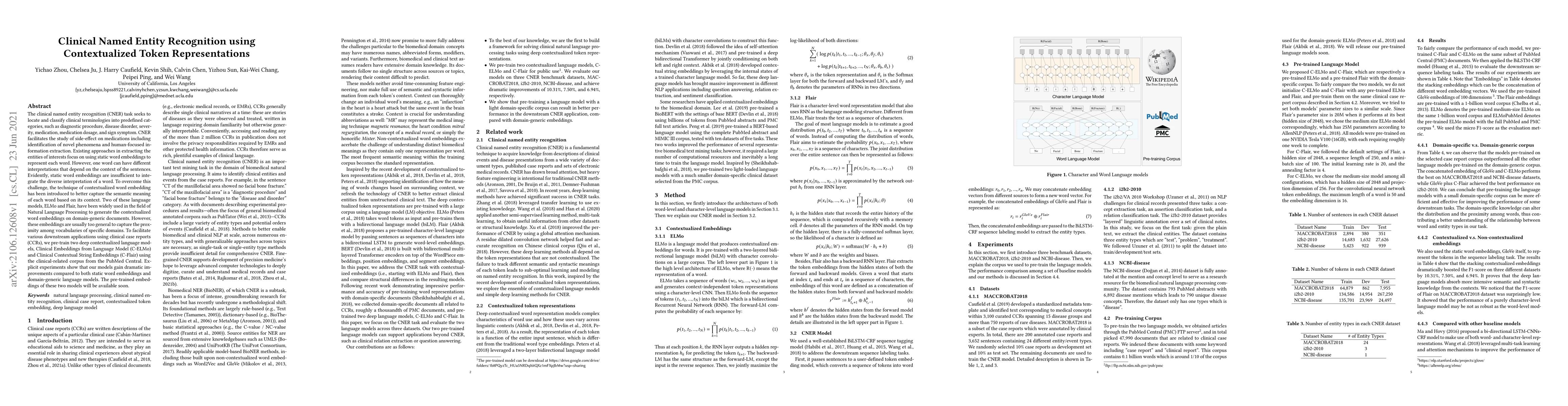 The clinical named entity recognition (CNER) task seeks to locate and classify clinical terminologies into predefined categories, such as diagnostic procedure, disease disorder, severity, medication, medication dosage, and sign symptom. CNER facilitates the study of side-effect on medications including identification of novel phenomena and human-focused information extraction. Existing approaches in extracting the entities of interests focus on using static word embeddings to represent each word. However, one word can have different interpretations that depend on the context of the sentences. Evidently, static word embeddings are insufficient to integrate the diverse interpretation of a word. To overcome this challenge, the technique of contextualized word embedding has been introduced to better capture the semantic meaning of each word based on its context. Two of these language models, ELMo and Flair, have been widely used in the field of Natural Language Processing to generate the contextualized word embeddings on domain-generic documents. However, these embeddings are usually too general to capture the proximity among vocabularies of specific domains. To facilitate various downstream applications using clinical case reports (CCRs), we pre-train two deep contextualized language models, Clinical Embeddings from Language Model (C-ELMo) and Clinical Contextual String Embeddings (C-Flair) using the clinical-related corpus from the PubMed Central. Explicit experiments show that our models gain dramatic improvements compared to both static word embeddings and domain-generic language models.