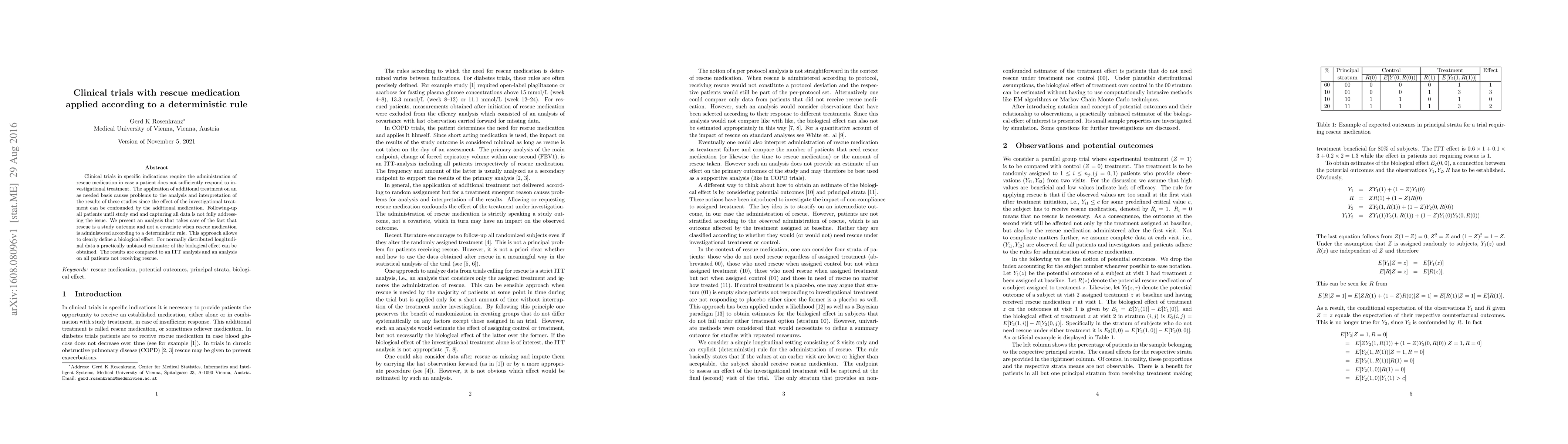 This paper proposes a method to analyze clinical trial data where rescue medication is administered according to a deterministic rule, allowing for a clear distinction between the investigational treatment's effect and the rescue medication's influence, thus providing a practically unbiased estimator of the biological effect. The approach is compared to intention-to-treat and non-rescue analyses.