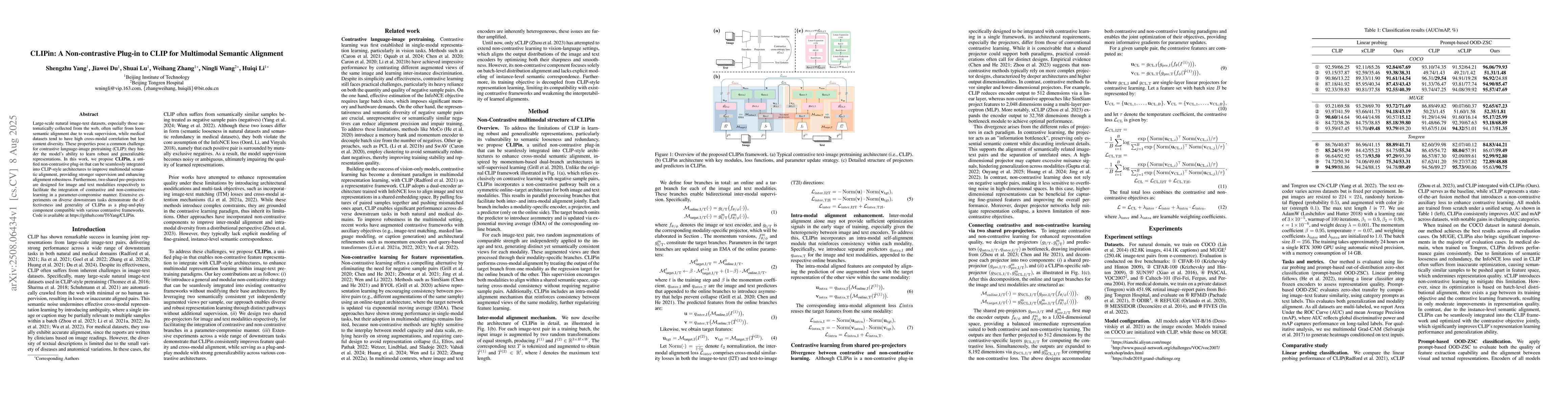 CLIPin introduces non-contrastive pathways to CLIP-style models, enhancing multimodal semantic alignment and providing a plug-and-play module for improving representation quality.