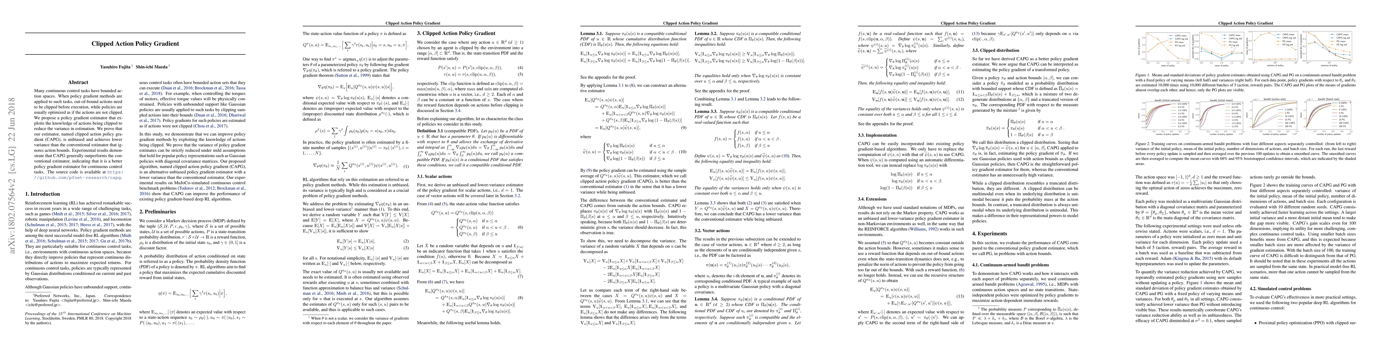 The Clipped Action Policy Gradient (CAPG) method reduces variance in policy gradient estimation for continuous control tasks with bounded action spaces by incorporating clipping knowledge. CAPG outperforms conventional estimators by proving unbiasedness and lower variance, as demonstrated in experiments. Source code is available at https://github.com/pfnet-research/capg.
