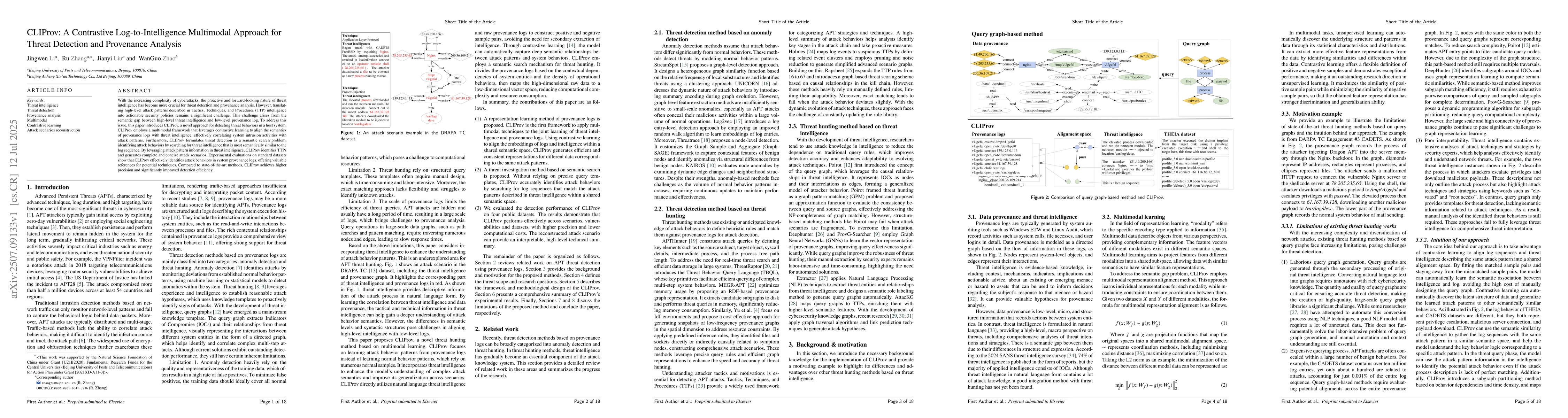 With the increasing complexity of cyberattacks, the proactive and forward-looking nature of threat intelligence has become more crucial for threat detection and provenance analysis. However, translating high-level attack patterns described in Tactics, Techniques, and Procedures (TTP) intelligence into actionable security policies remains a significant challenge. This challenge arises from the semantic gap between high-level threat intelligence and low-level provenance log. To address this issue, this paper introduces CLIProv, a novel approach for detecting threat behaviors in a host system. CLIProv employs a multimodal framework that leverages contrastive learning to align the semantics of provenance logs with threat intelligence, effectively correlating system intrusion activities with attack patterns. Furthermore, CLIProv formulates threat detection as a semantic search problem, identifying attack behaviors by searching for threat intelligence that is most semantically similar to the log sequence. By leveraging attack pattern information in threat intelligence, CLIProv identifies TTPs and generates complete and concise attack scenarios. Experimental evaluations on standard datasets show that CLIProv effectively identifies attack behaviors in system provenance logs, offering valuable references for potential techniques. Compared to state-of-the-art methods, CLIProv achieves higher precision and significantly improved detection efficiency.