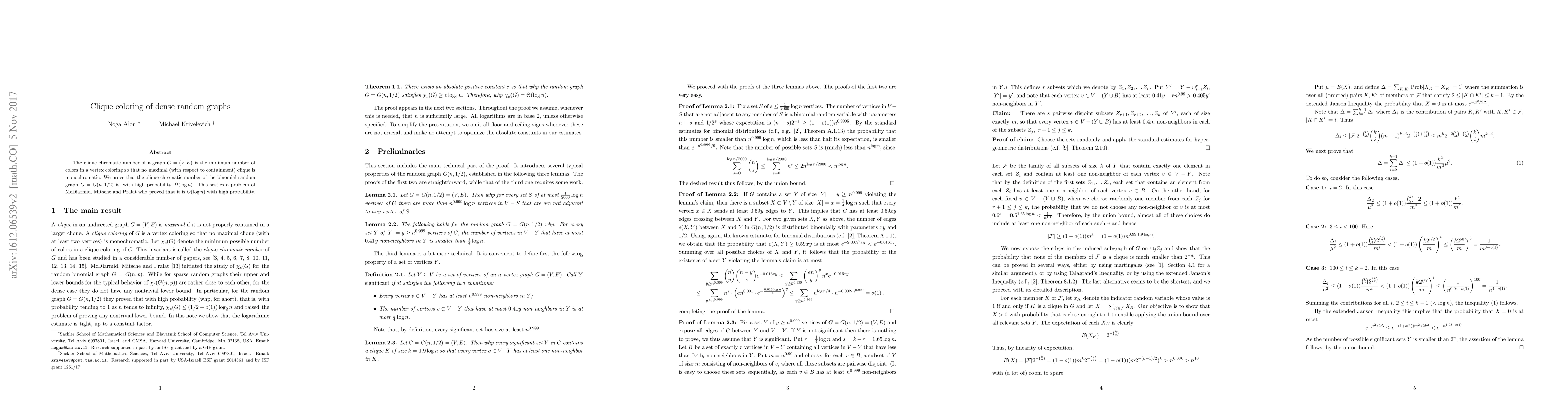 The clique chromatic number of a graph G=(V,E) is the minimum number of colors in a vertex coloring so that no maximal (with respect to containment) clique is monochromatic. We prove that the clique chromatic number of the binomial random graph G=G(n,1/2) is, with high probability, \Omega(log n). This settles a problem of McDiarmid, Mitsche and Pralat who proved that it is O(log n) with high probability.