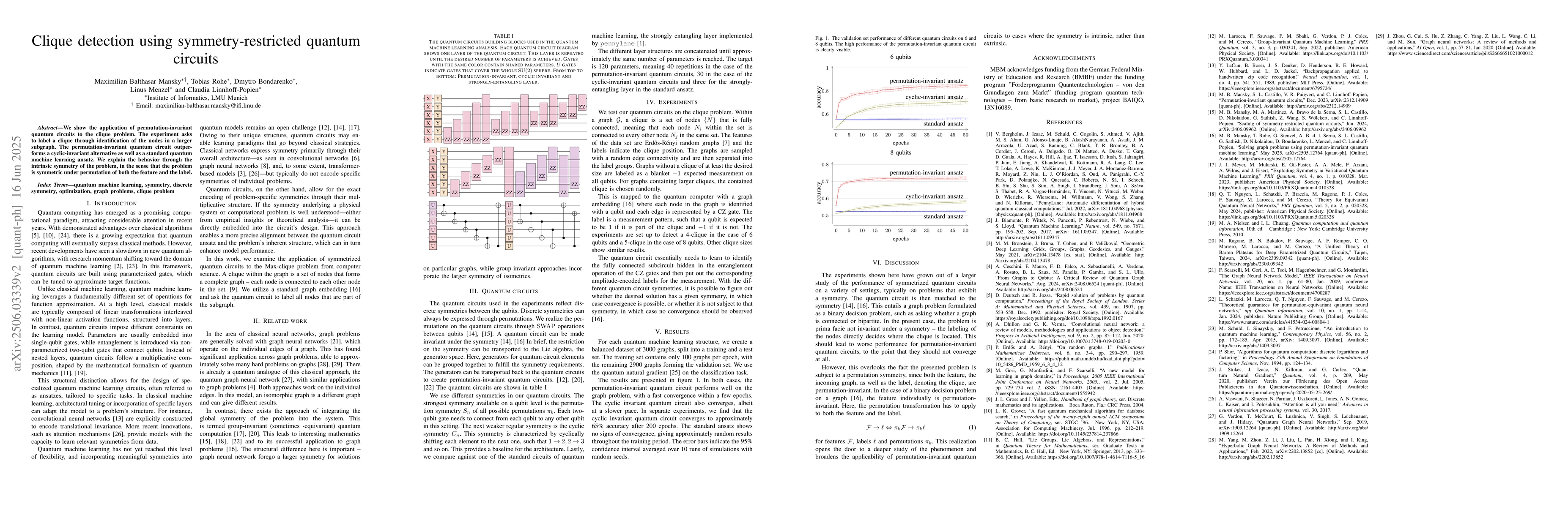 A new method for detecting cliques in graphs uses permutation-invariant quantum circuits, outperforming traditional methods and exploiting the symmetry of the problem to achieve better results.