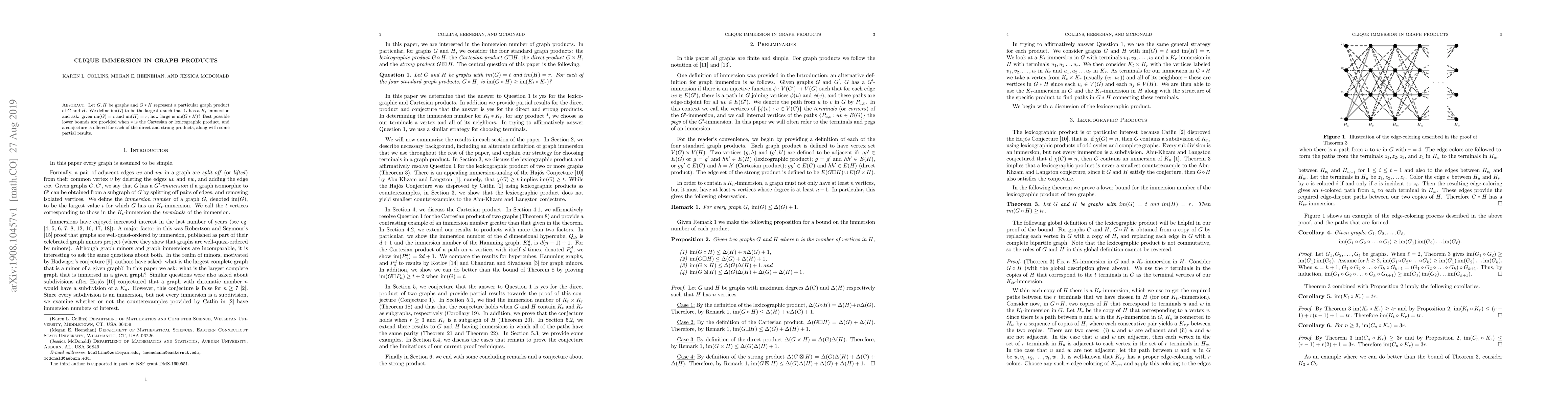 Let $G,H$ be graphs and $G*H$ represent a particular graph product of $G$ and $H$. We define $im(G)$ to be the largest $t$ such that $G$ has a $K_t$-immersion and ask: given $im(G)=t$ and $im(H)=r$, how large is $im(G*H)$? Best possible lower bounds are provided when $*$ is the Cartesian or lexicographic product, and a conjecture is offered for each of the direct and strong products, along with some partial results.