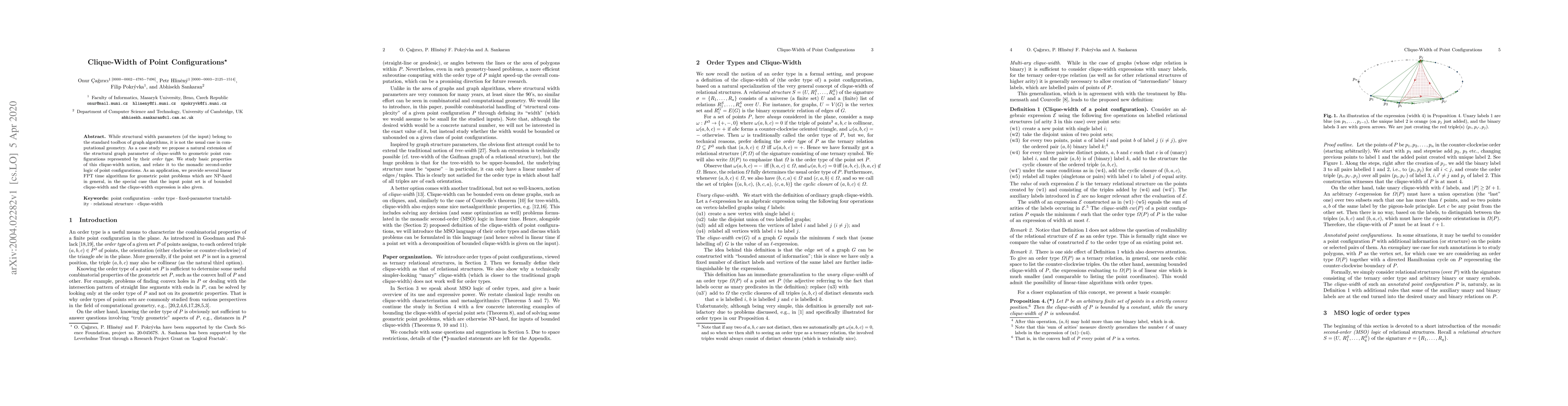 This paper extends the structural graph parameter of clique-width to geometric point configurations represented by their order type, relating it to monadic second-order logic, and presents linear FPT time algorithms for NP-hard geometric problems when the input point set has bounded clique-width.