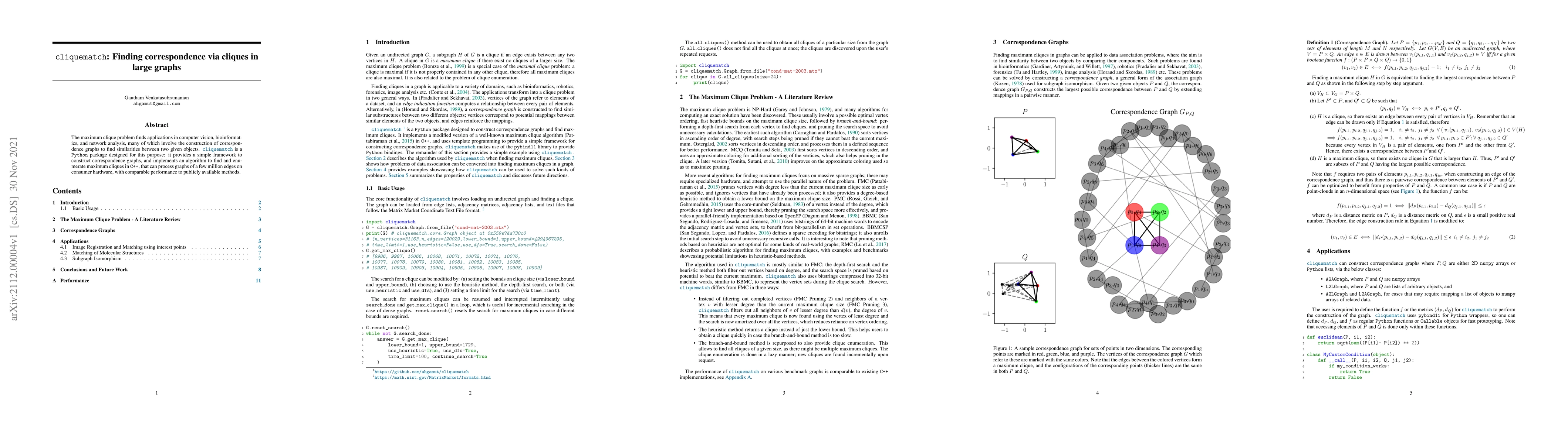 A new Python package called cliquematch enables efficient computation of maximum cliques in large graphs, facilitating correspondence graph construction for applications like computer vision and bioinformatics.