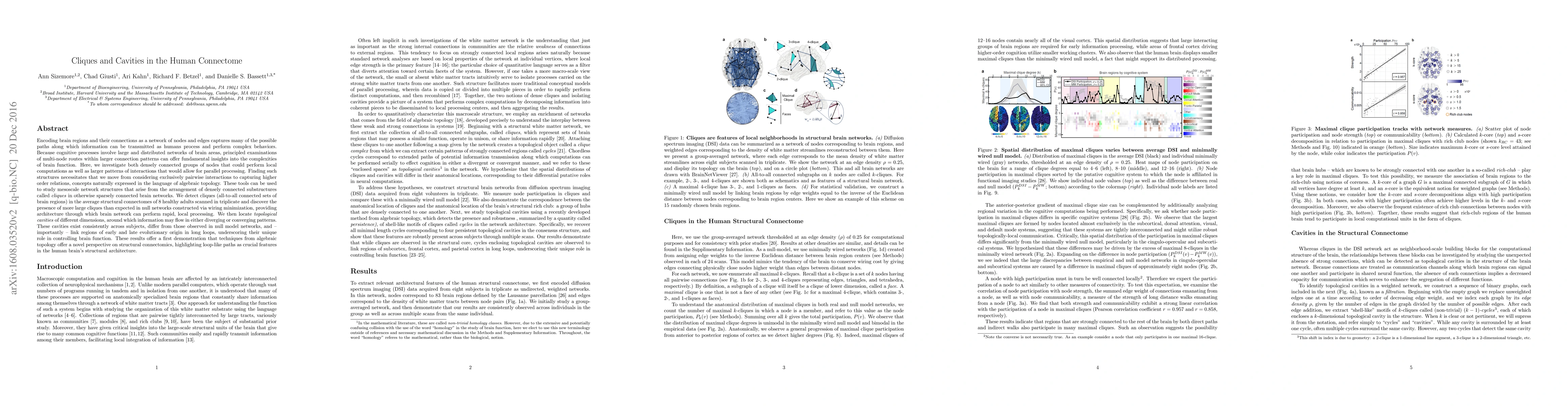 This paper investigates the presence of cliques and cavities in the human connectome using algebraic topology to uncover mesoscale structures that facilitate local and parallel processing. The study finds more large cliques and distinct topological cavities in actual brain networks compared to null models, suggesting these features play a unique role in brain function.