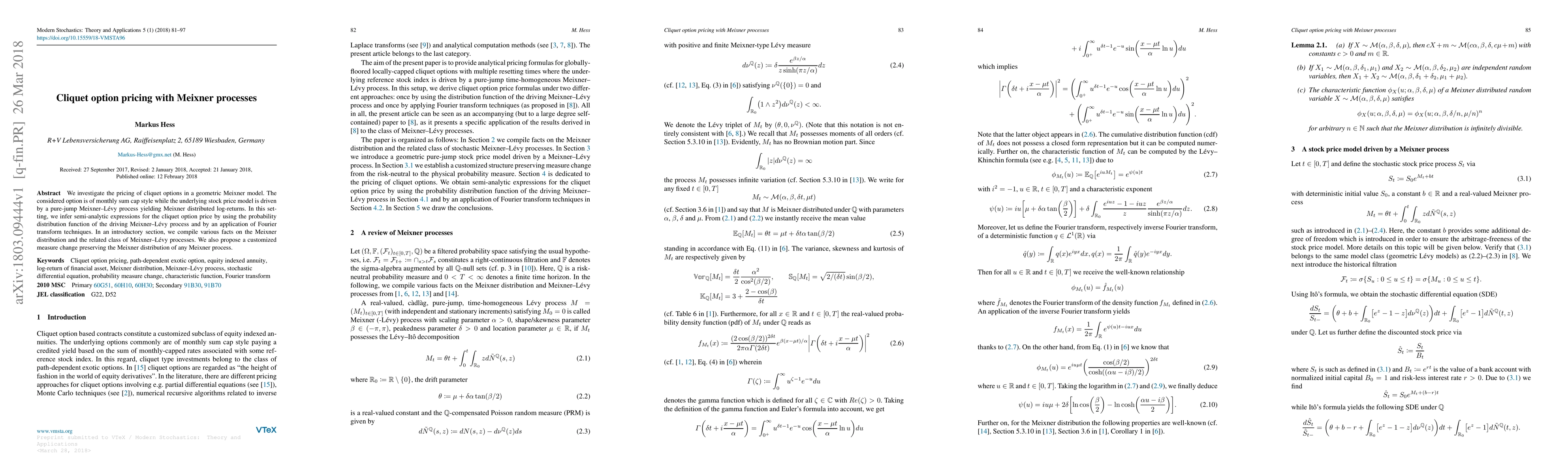 This paper prices monthly sum cap cliquet options within a geometric Meixner model driven by a pure-jump Meixner-Lévy process. It derives semi-analytic expressions for the option prices using Fourier transform techniques and the Meixner distribution's probability function.