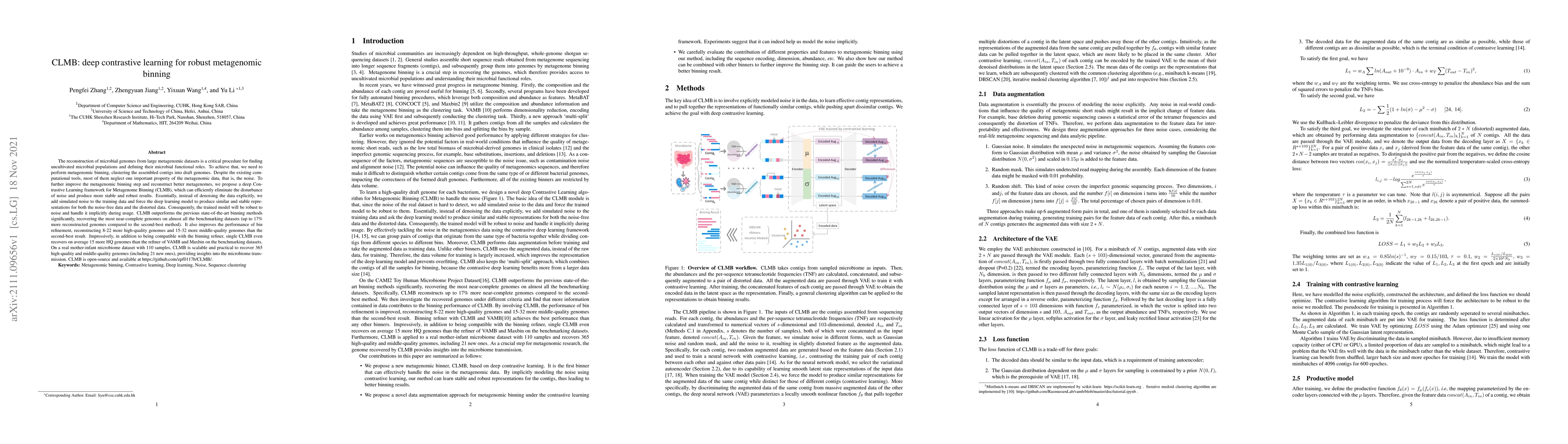 The paper proposes CLMB, a deep contrastive learning framework for robust metagenomic binning that enhances the reconstruction of microbial genomes by implicitly learning to handle noise. CLMB outperforms existing methods, recovering significantly more high-quality genomes and improving bin refinement.