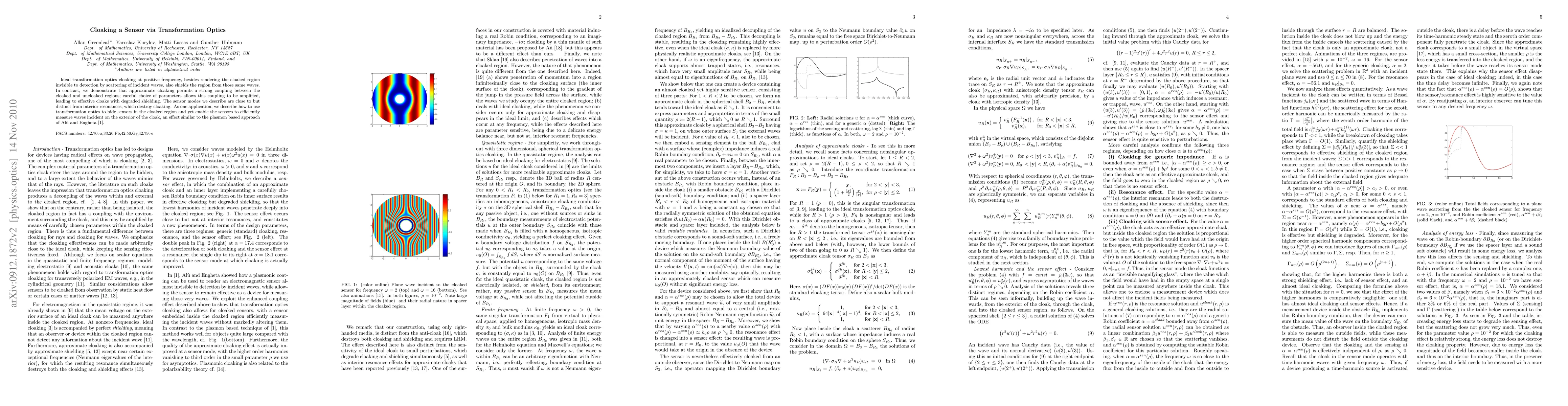 Transformation optics can cloak regions by rendering them invisible to waves, but this often compromises shielding. Researchers show that coupling between cloaked and uncloaked regions can be amplified through interior resonances, allowing hidden sensors to still measure external waves effectively.
