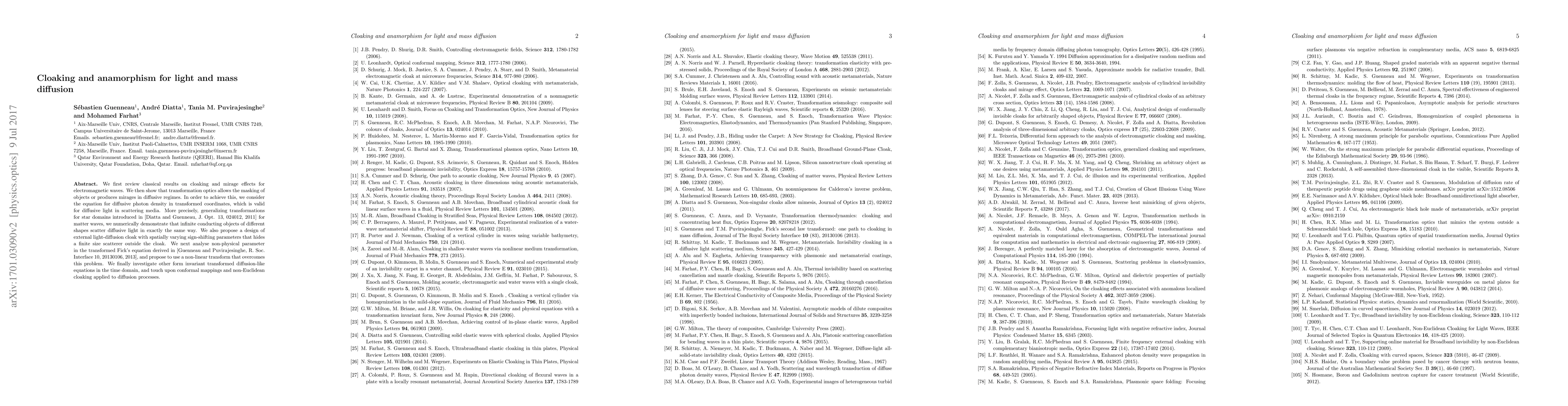 This paper reviews classical cloaking techniques and extends them to diffusive light and mass diffusion, demonstrating that transformation optics can mask objects or create mirages in scattering media. It proposes a design for an external light-diffusion cloak and discusses overcoming non-physical parameters in transformed diffusion equations using non-linear transforms.