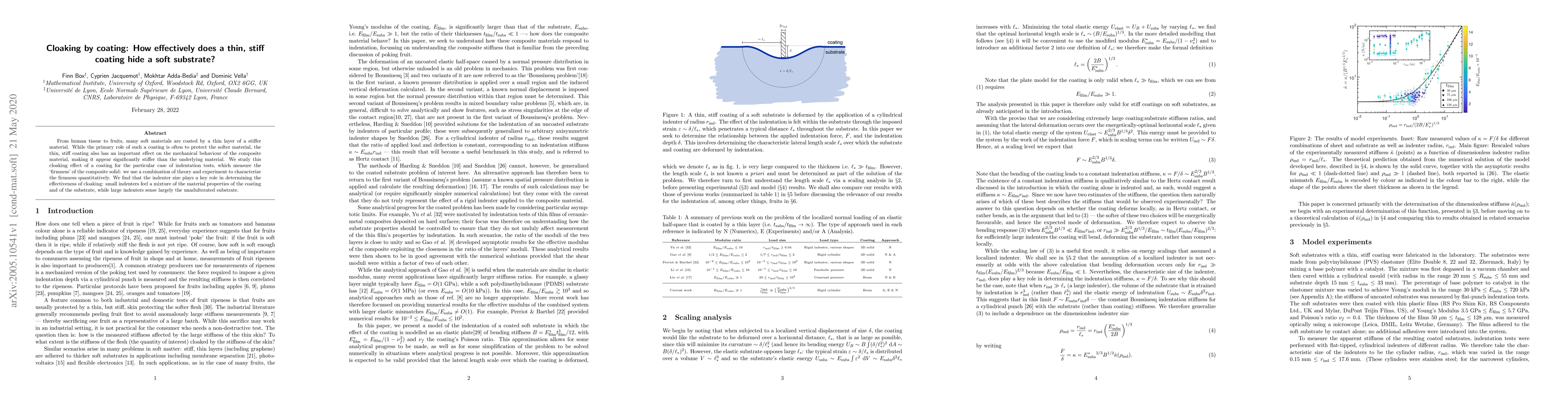 This study investigates how a thin, stiff coating affects the perceived firmness of a soft substrate during indentation tests, finding that the indenter size determines the cloaking effectiveness: small indenters detect both coating and substrate properties, while large indenters primarily sense the substrate.