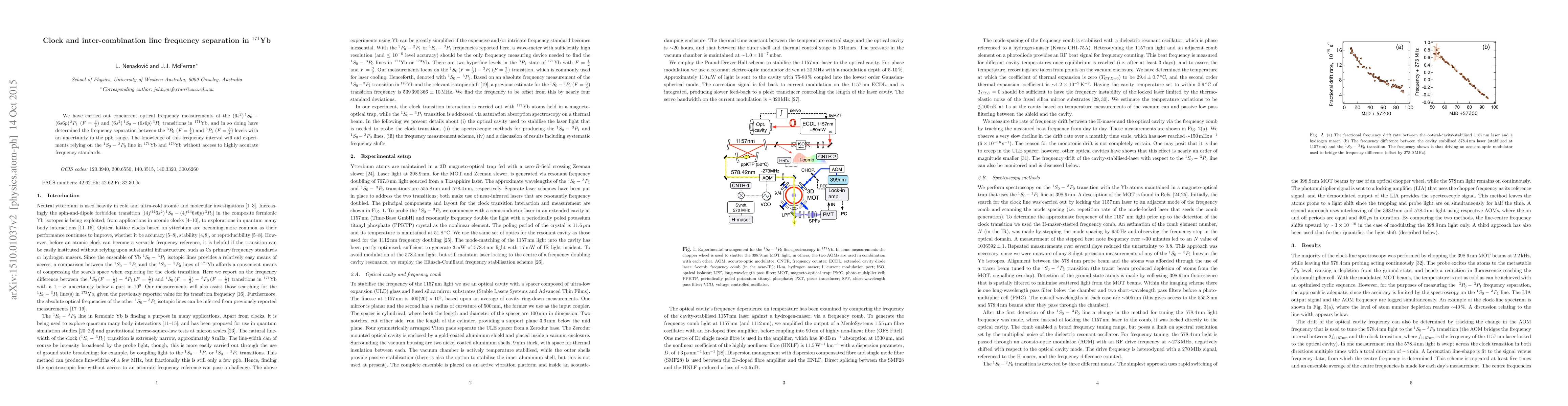This paper reports precise optical frequency measurements of two transitions in $^{171}$Yb, determining the frequency separation between the $^{3}P_{0}$ and $^{3}P_{1}$ levels with sub-ppb uncertainty. This knowledge supports experiments using the $^{1}S_{0}-\,^{3}P_{0}$ line in $^{171}$Yb and $^{173}$Yb without requiring highly accurate frequency standards.