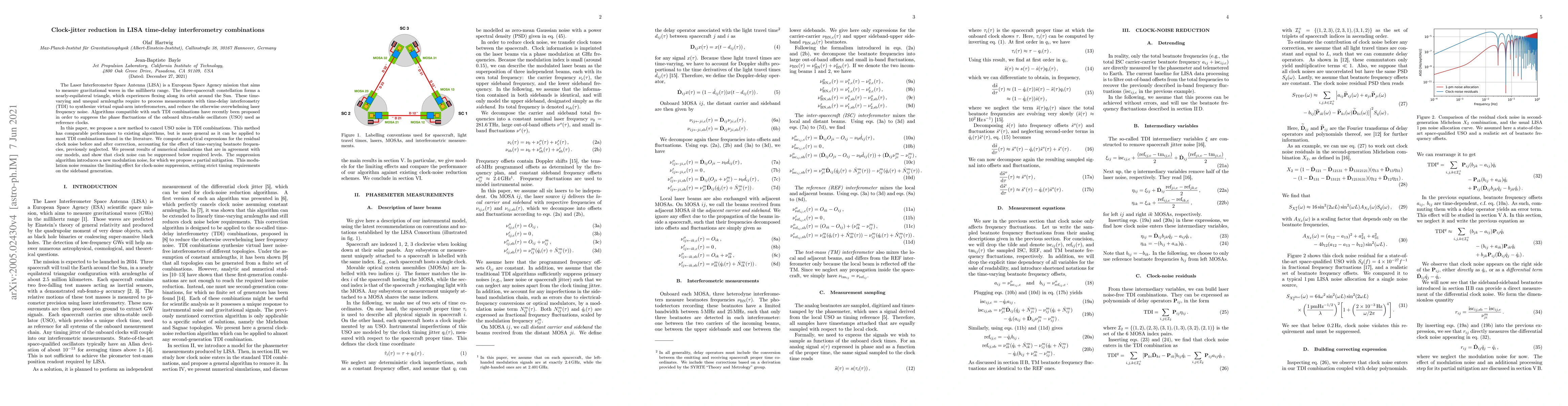 This paper proposes a new method to reduce clock-jitter in LISA's time-delay interferometry combinations, achieving comparable performance to existing algorithms while being more general. The method effectively suppresses onboard oscillator noise, though it introduces a new modulation noise that sets strict timing requirements for sideband generation.
