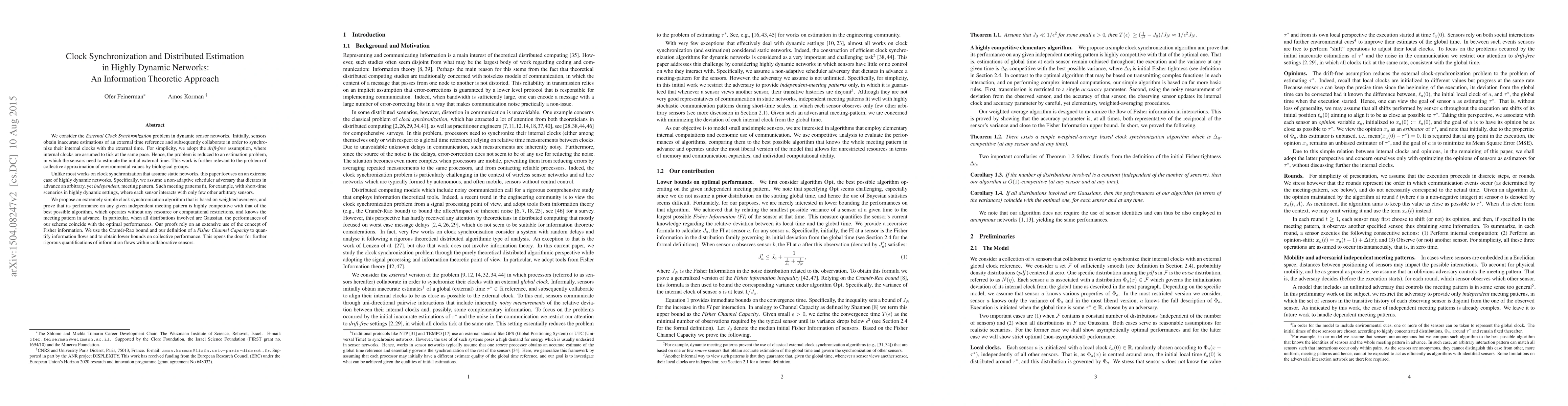 This paper addresses the External Clock Synchronization problem in highly dynamic sensor networks, proposing a simple weighted average algorithm that achieves near-optimal synchronization performance. The approach leverages information theory, specifically Fisher information, to quantify information flows and provide rigorous lower bounds on collective estimation performance.