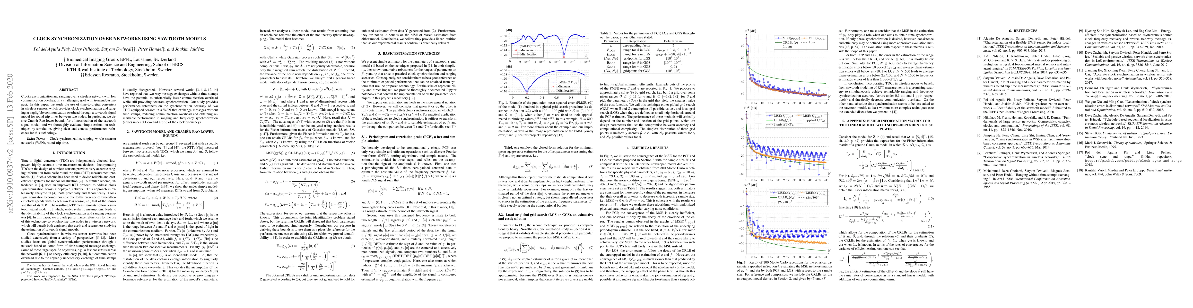 This paper explores clock synchronization in wireless networks using time-to-digital converters and a sawtooth signal model, achieving synchronization with minimal communication overhead. The study derives Cramér-Rao lower bounds for the model and evaluates estimation techniques through simulations to provide performance benchmarks.